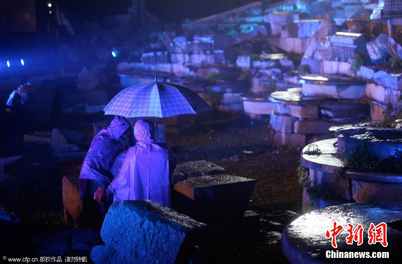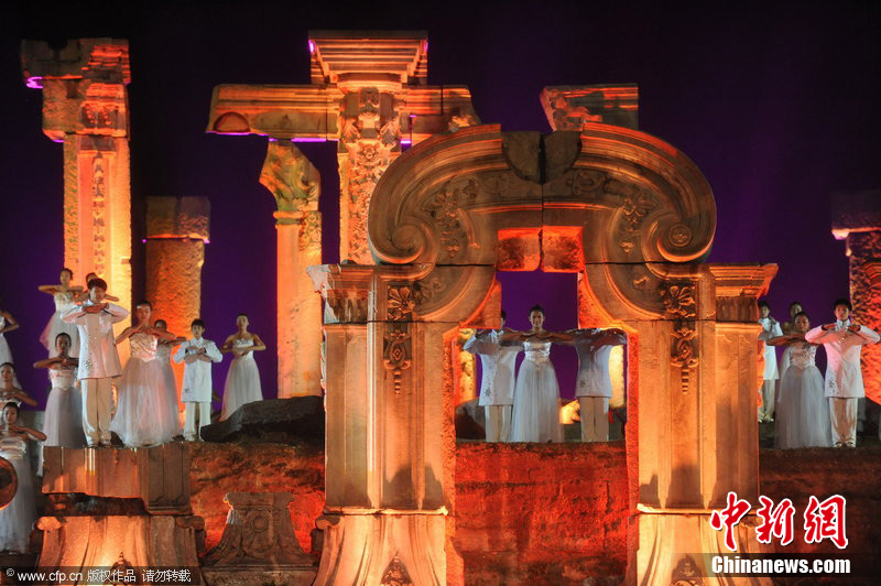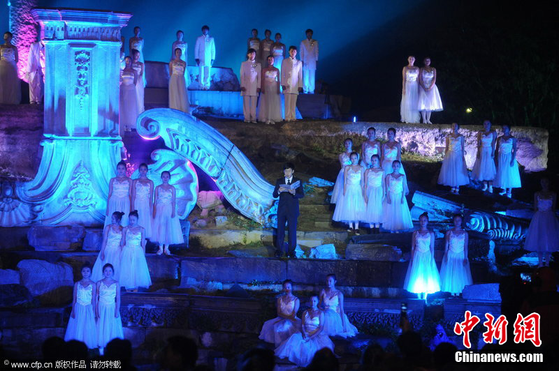 2010年10月18日晚,北京,圓明園罹難150周年紀(jì)念儀式在大水法前舉行。億佰 攝 圖片來源:CFP視覺中國