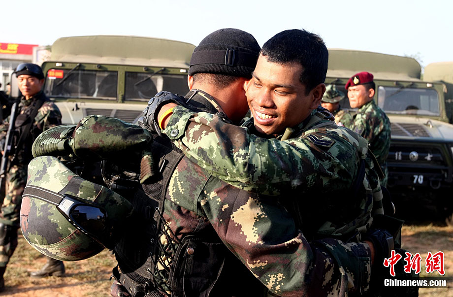 10月6日至20日,代號(hào)“突擊—2010”的中泰陸軍特種部隊(duì)聯(lián)合反恐訓(xùn)練在廣西桂林舉行。經(jīng)過(guò)十多天在一起的訓(xùn)練和磨合,中泰雙方參訓(xùn)隊(duì)員不僅全面深入地交流了反恐技戰(zhàn)術(shù),而且參訓(xùn)隊(duì)員之間感情不斷加深,已親如兄弟。