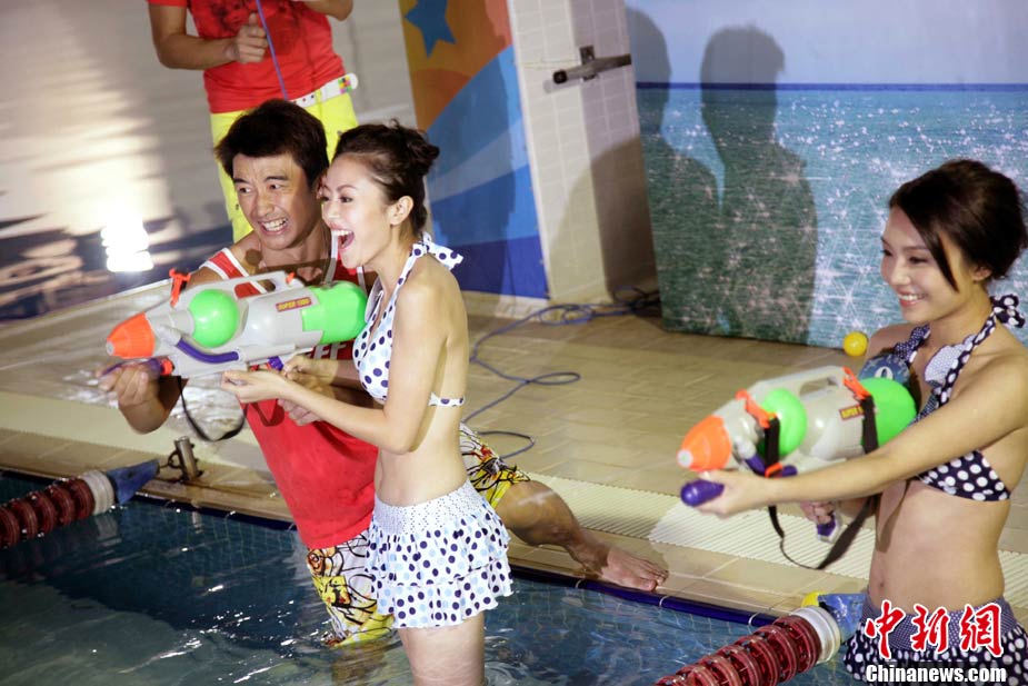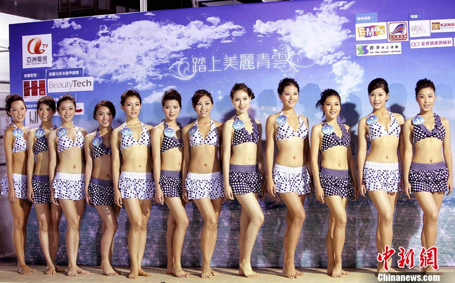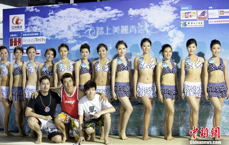 10月19日,參加《2010亞洲小姐競(jìng)選》(港澳賽區(qū))的9號(hào)佳麗陳明月(右)和10號(hào)佳麗何婭換上泳裝,進(jìn)行水上競(jìng)技,以各種游戲方式放松心情去迎接總決賽。中新社發(fā) 洪少葵 攝