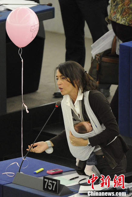 歐洲議會(huì)女議員懷抱孩子出席會(huì)議