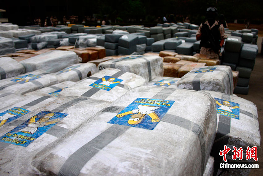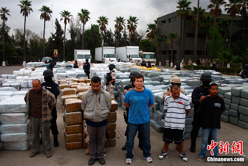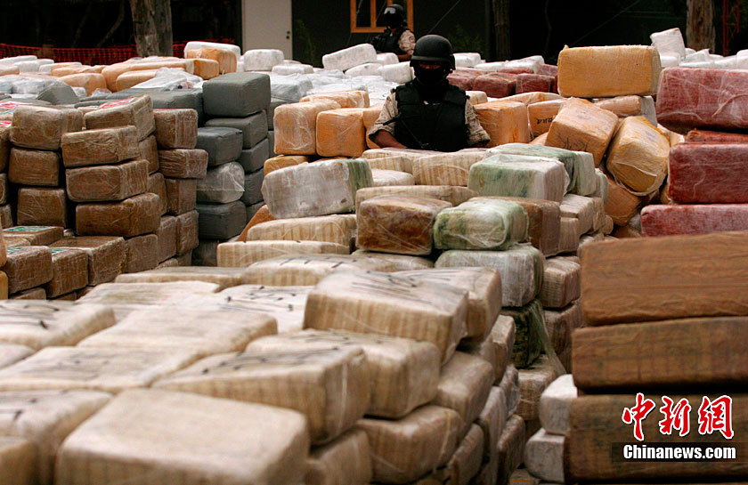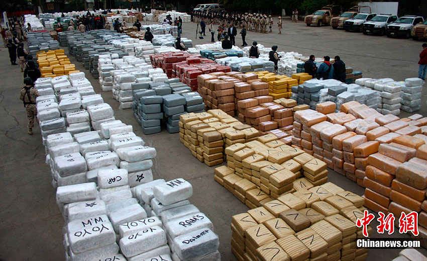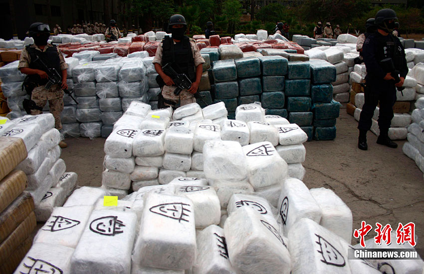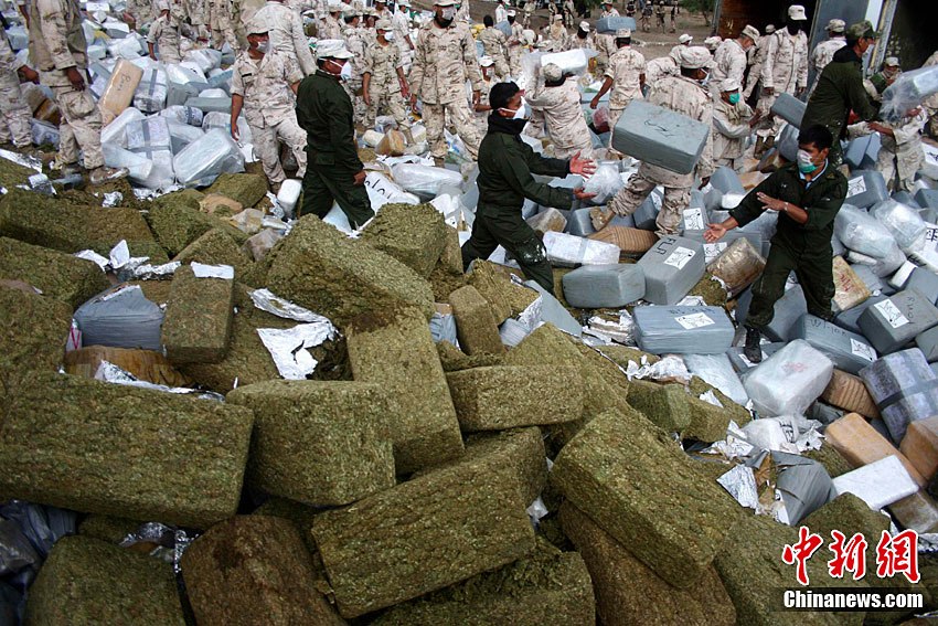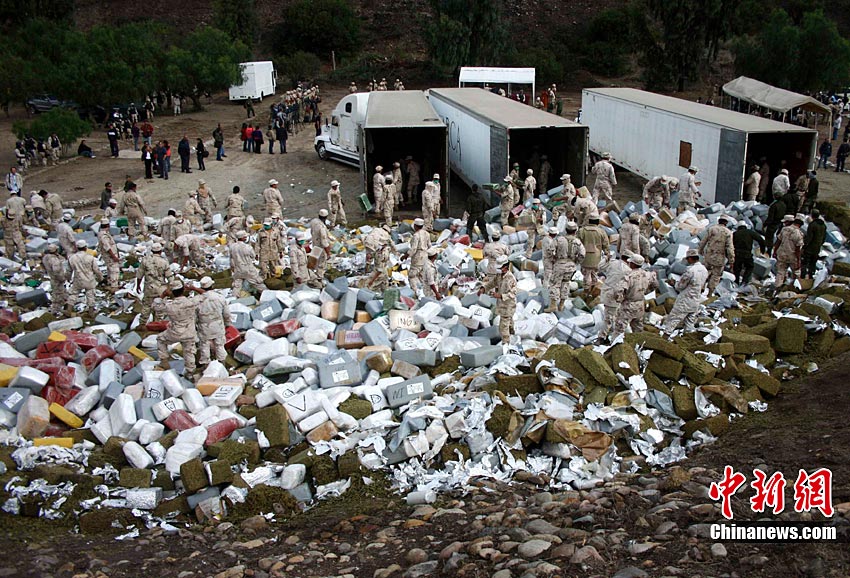 當(dāng)?shù)貢r(shí)間10月20日,墨西哥在北部邊境城市蒂華納的一個(gè)軍營內(nèi)集中銷毀了在北部邊境繳獲的134噸大麻。