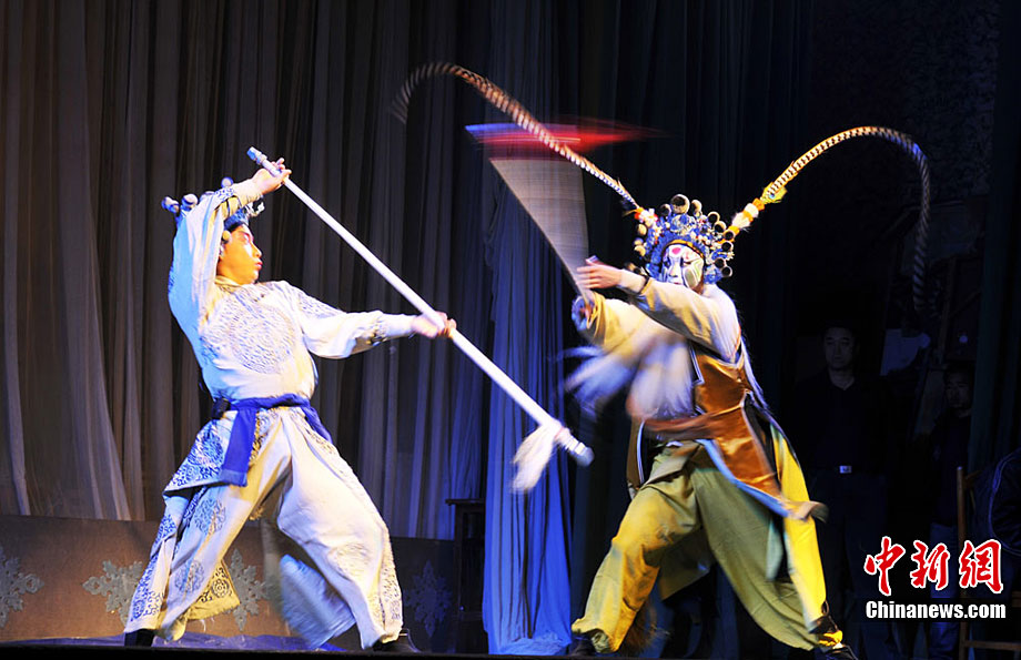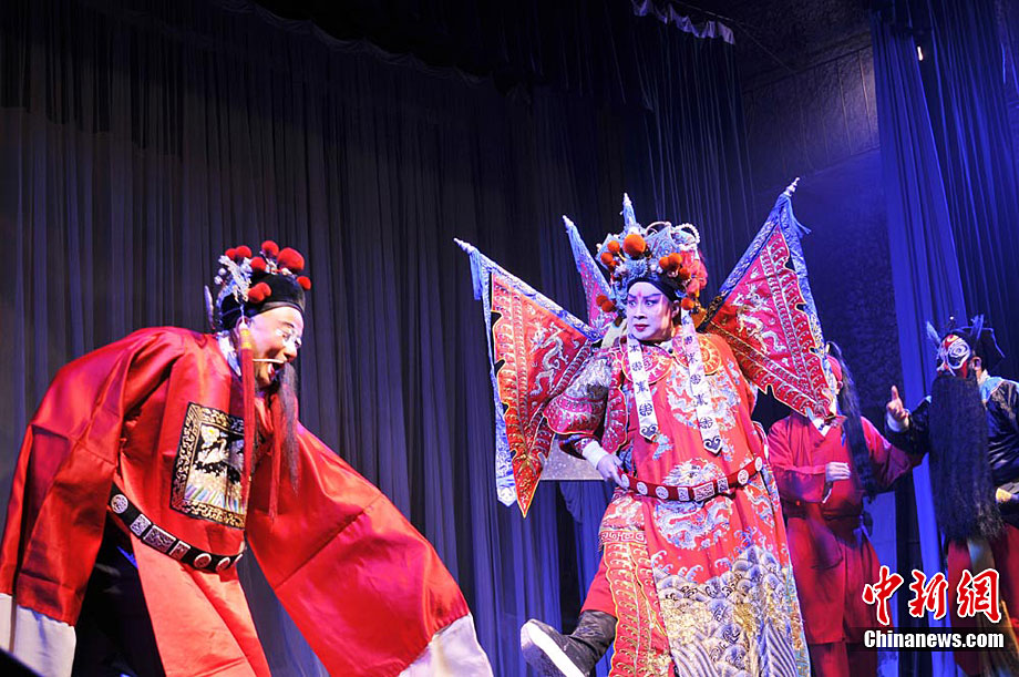 10月18日至22日,甘肅秦劇團(tuán)到基層為鄉(xiāng)下人唱“大戲”,演員們唱念做打演,招招真功夫給鄉(xiāng)親們送來了一場場戲曲大餐!度窝贰ⅰ痘鹧骜x》、《竇娥冤》等演出,一出出膾炙人口的傳統(tǒng)劇目風(fēng)格各異,精彩紛呈,鄉(xiāng)親們在一次次的情節(jié)跌宕中笑聲不止、掌聲不斷。秦腔又稱亂彈,源于西秦腔,流行于中國西北的陜西、甘肅、青海、寧夏、新疆等地,又因其以棗木梆子為擊節(jié)樂器,所以又叫“梆子腔”,俗稱“桄桄子”,經(jīng)國務(wù)院批準(zhǔn)列入第一批國家級非物質(zhì)文化遺產(chǎn)名錄。楊艷敏 攝