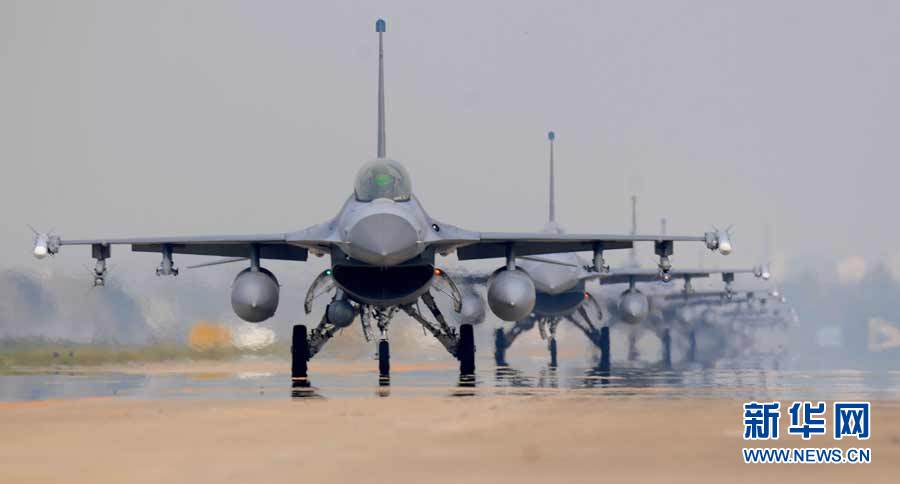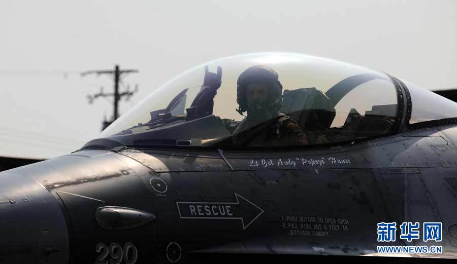10月21日,美國空軍F-16型“戰(zhàn)隼”式戰(zhàn)斗機準(zhǔn)備從位于韓國京畿道的駐韓美軍烏山空軍基地起飛。