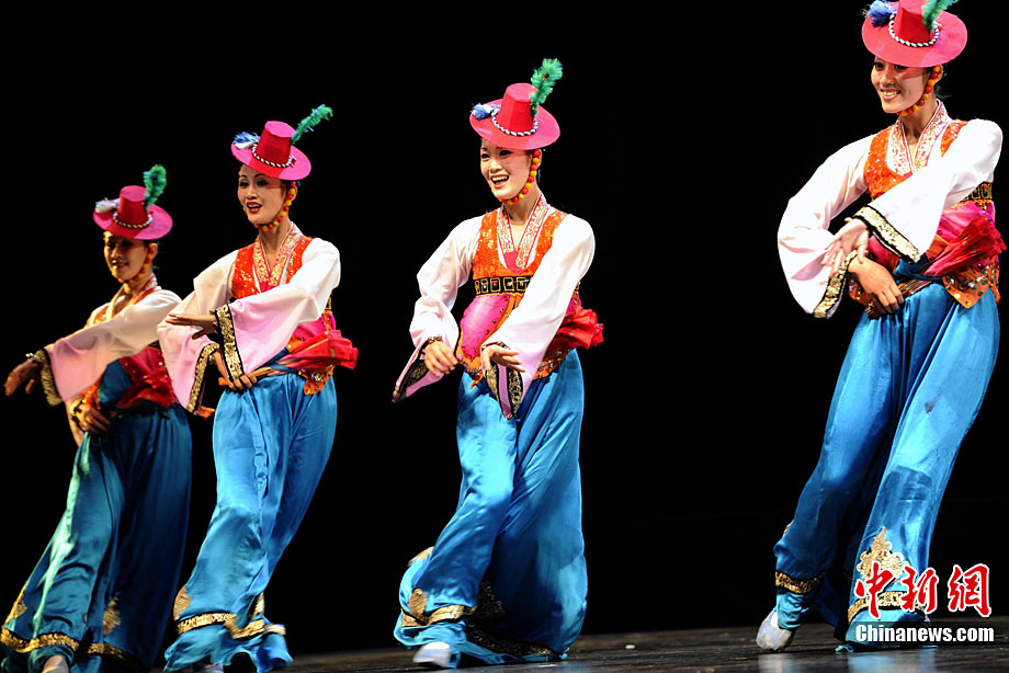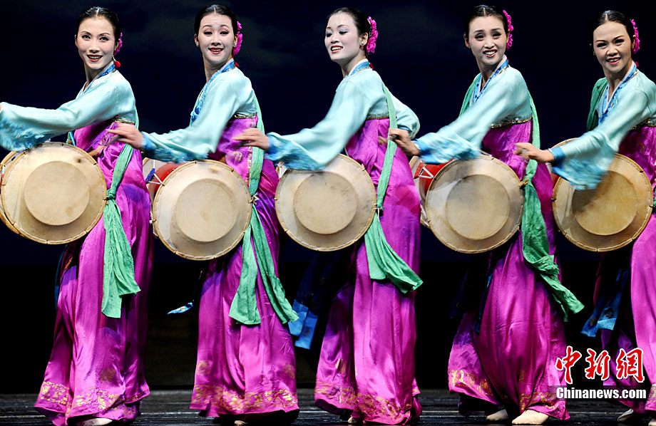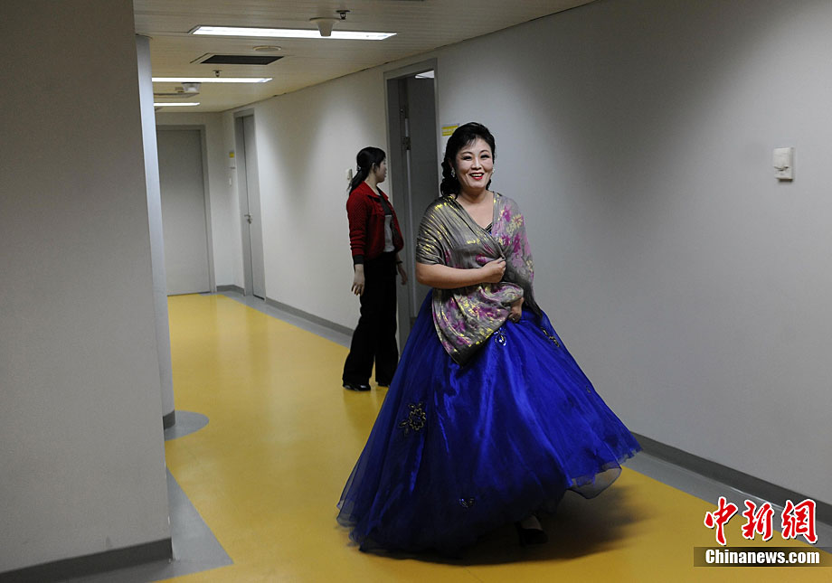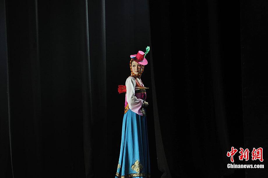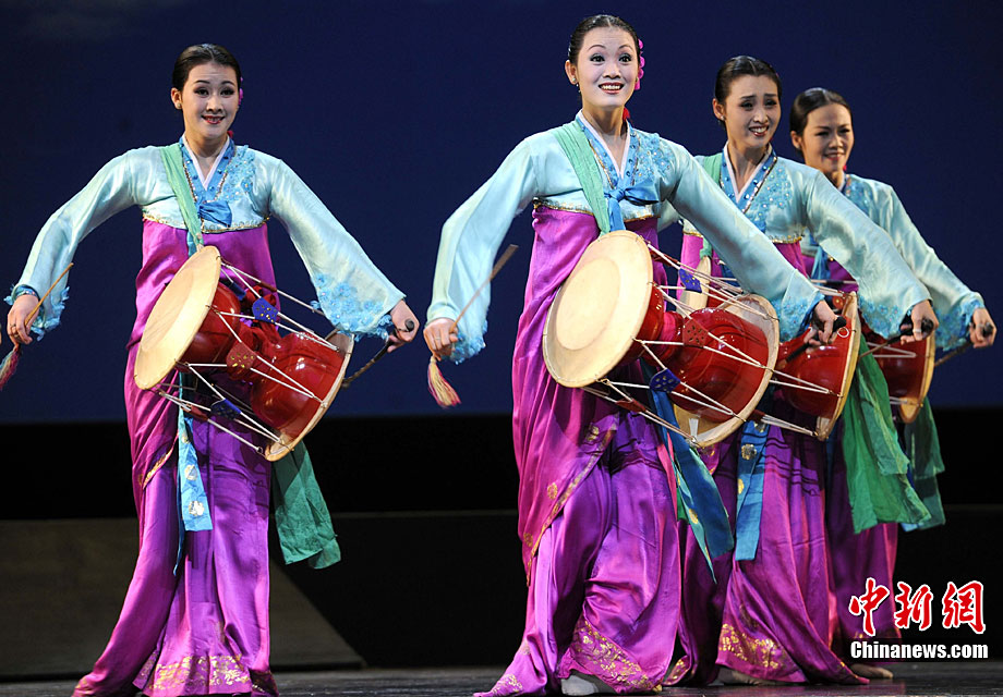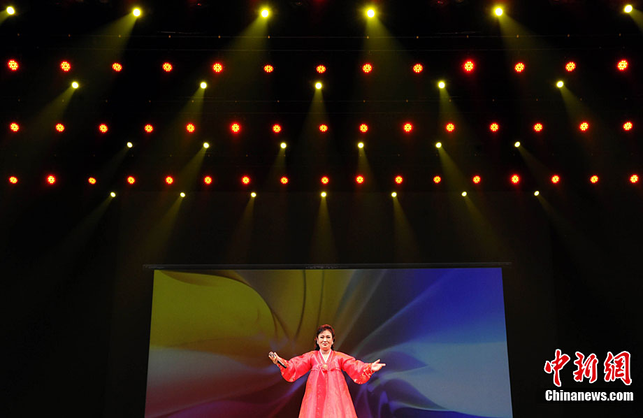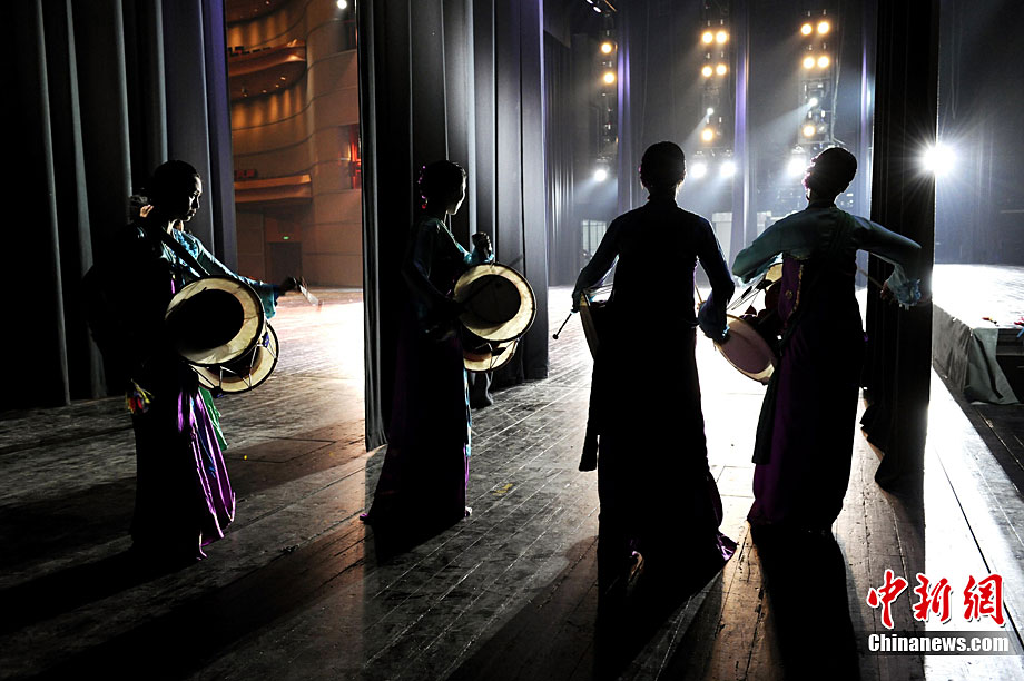 10月22日晚,朝鮮平壤藝術(shù)團(tuán)在國家大劇院進(jìn)行彩排。10月23至24日,朝鮮平壤藝術(shù)團(tuán)將在北京國家大劇院歌劇院上演歌舞晚會《怒放的金達(dá)萊》。此次來訪的朝鮮平壤藝術(shù)團(tuán),是朝鮮政府專門為參加上海世博會朝鮮館日組建的表演團(tuán)體,該團(tuán)成員來自朝鮮最重要的三大藝術(shù)團(tuán)體:萬壽臺藝術(shù)團(tuán)、血海藝術(shù)團(tuán)和朝鮮民族國立藝術(shù)團(tuán),參演人員薈萃了朝鮮最優(yōu)秀的藝術(shù)家。演員們將身著獨具特色的民族服飾,表演《長鼓舞》、《拾貝姑娘》、《鈴鐺舞》、《三人舞》等傳統(tǒng)舞蹈。中新社記者 劉震 攝