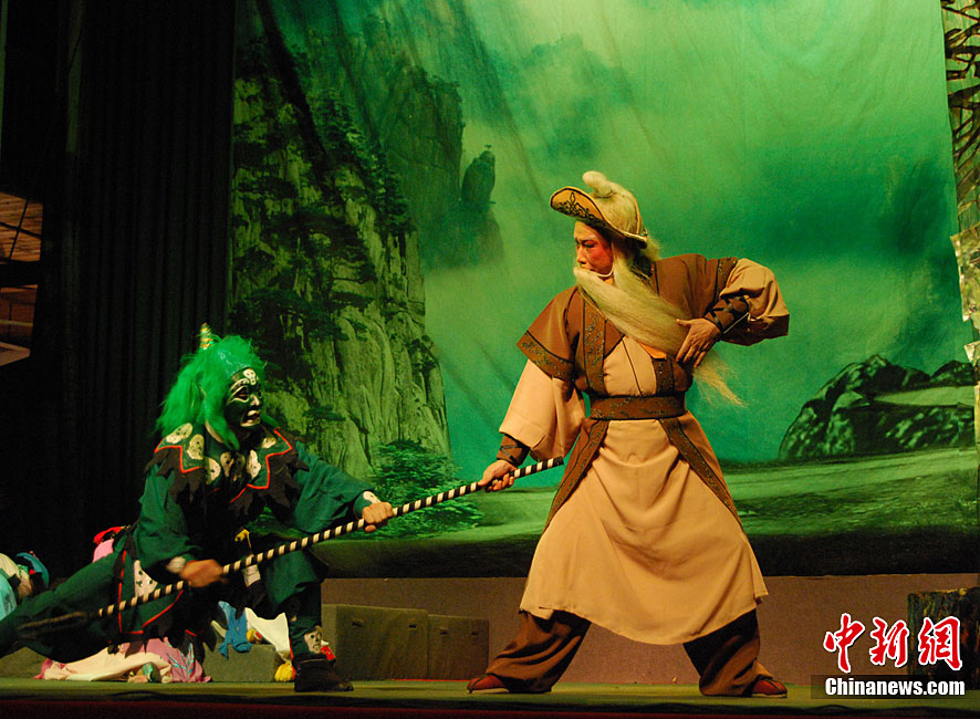 10月22日晚,中國首屆臨水夫人陳靖姑文化學(xué)術(shù)研討會(huì)獻(xiàn)演劇目,大型神話閩劇《臨水夫人陳靖姑》在陳靖姑祖廟所在地——福建古田精彩上演。該劇由古田縣閩劇團(tuán)演出,共有《陳靖姑出世》、《蛇鬼禍害》、《延婚離家》、《結(jié)義學(xué)法》、《婚禮劍影》、《蛇鬼陰謀》、《哭別嬰兒》、《閩江祈雨》、《得道臨水》、《天上人間》10個(gè)場次,講述了陳靖姑降妖除魔、救助婦孺的感人事跡。兩岸媽祖宮廟代表人和當(dāng)?shù)匦疟,共同觀看了此次演出。李松 攝