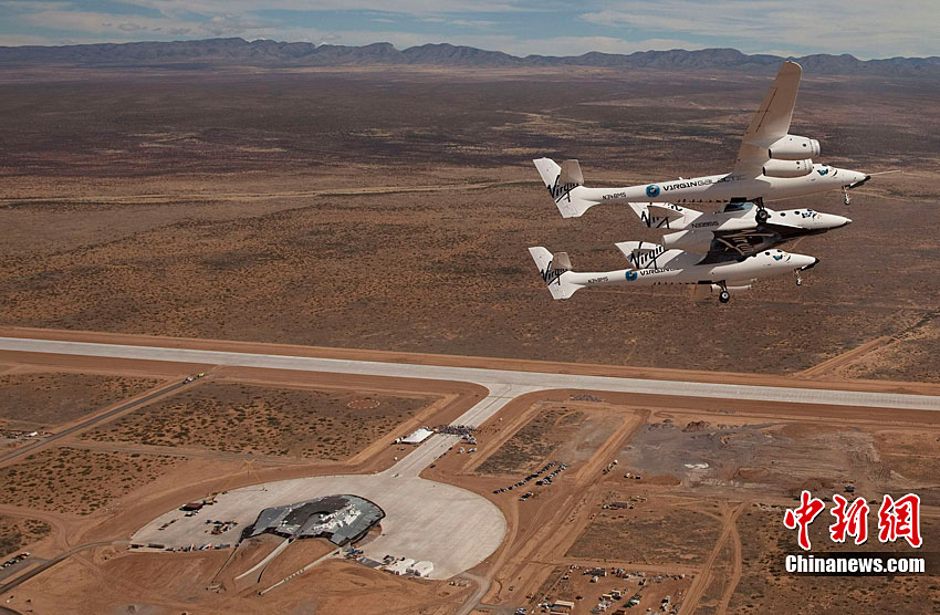 當(dāng)?shù)貢r(shí)間10月22日,英國(guó)維珍集團(tuán)下屬維珍銀河航天公司在位于美國(guó)新墨西哥州拉斯克魯塞斯附近沙漠地區(qū)建成了世界上首條太空船滑行跑道。這條跑道被命名為“美國(guó)太空港”。該公司打算在2012年用民用太空船把游客送上地球次軌道空間。