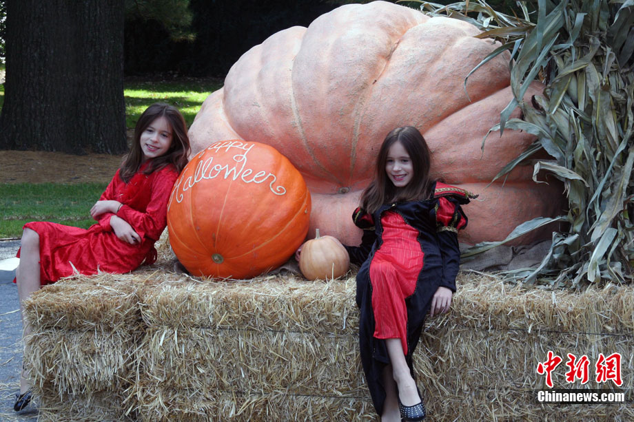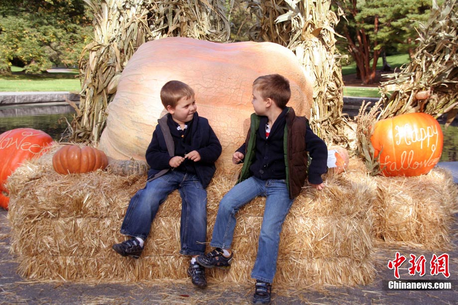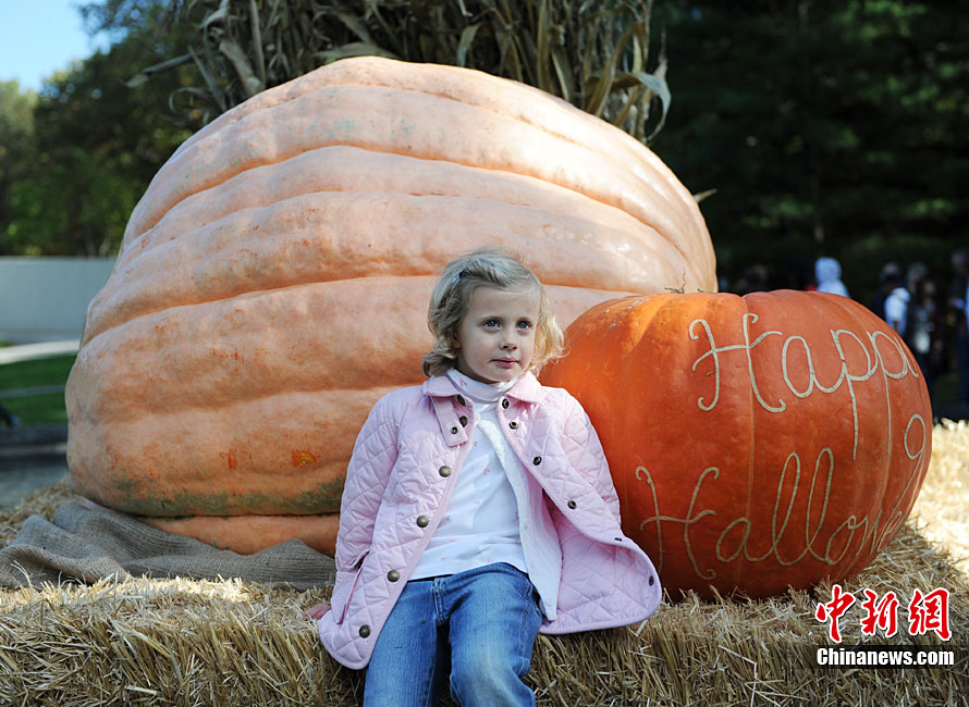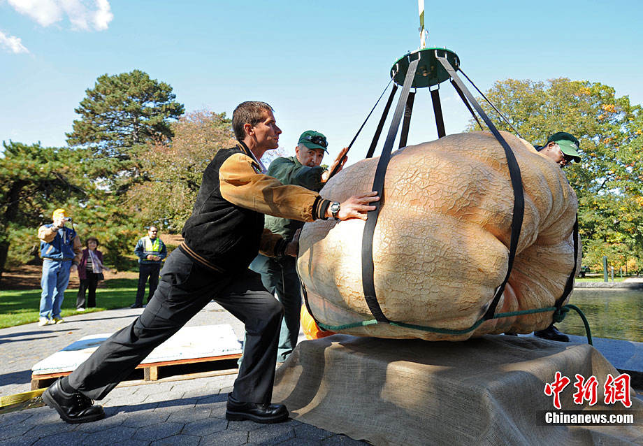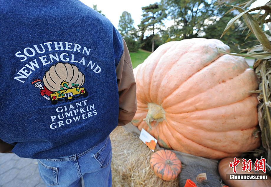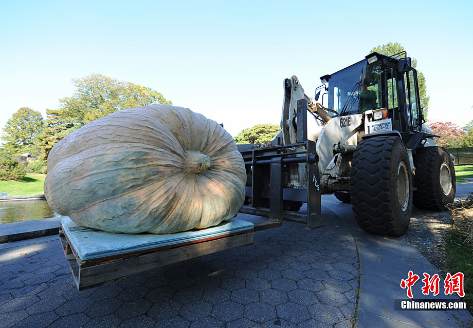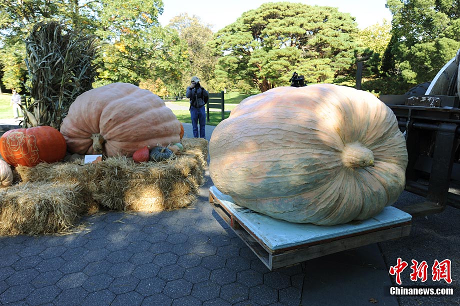 當?shù)貢r間10月21日,世界上大個頭南瓜在美國紐約植物園里集體亮相展示,其中包括剛打破世界紀錄重達821.2公斤的“新科狀元”。