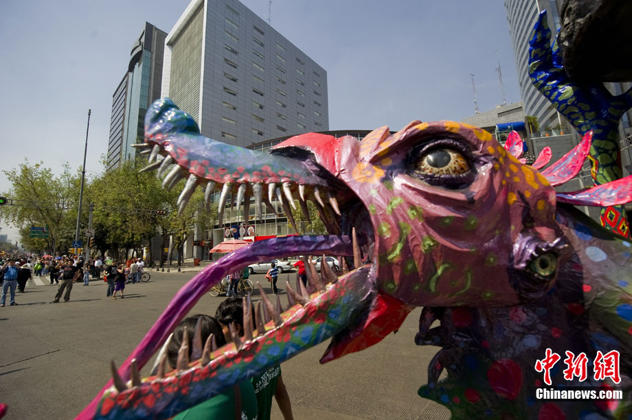 當(dāng)?shù)貢r(shí)間10月23日,墨西哥首都墨西哥城,人們舉行名為“Alebrijes”的怪獸大游行。Alebrijes是典型的墨西哥瓦哈卡州手工藝品。佩德羅·利納雷斯在1936年創(chuàng)作出名為Alebrije的工藝品,它以紙漿制成,最大的特點(diǎn)就是它是不存在或人們想象的動(dòng)物。