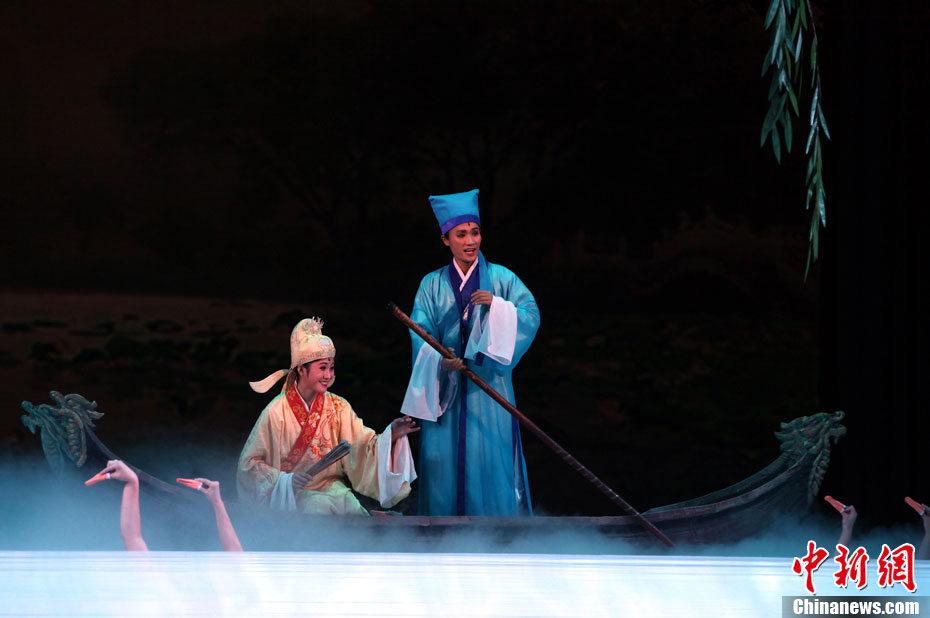 10月24日下午,朝鮮平壤大劇場上演其新排演的歌劇《梁山伯與祝英臺》。為紀(jì)念中國人民志愿軍赴朝參戰(zhàn)60周年,朝鮮血海歌劇團(tuán)把中國民間傳說《梁山伯與祝英臺》改編成歌劇。圖為該歌劇中“梁;钡木势。中新社發(fā) 孫自法 攝