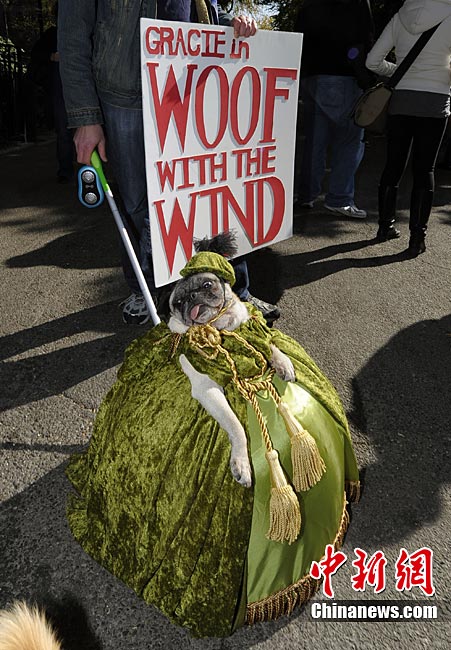 10月31日是西方傳統(tǒng)的萬(wàn)圣節(jié)。當(dāng)?shù)貢r(shí)間10月23日美國(guó)紐約湯普金斯廣場(chǎng)公園舉行了第20屆萬(wàn)圣節(jié)小狗大游行活動(dòng)。“出席”活動(dòng)的小狗們裝扮的造型都很別致,讓人忍俊不禁。