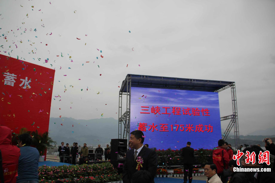 10月26日上午8時30分,在三峽大壩壩頂舉行了“見證三峽工程試驗性蓄水至175米儀式”,8時55分,中國長江三峽集團(tuán)公司董事長曹廣晶宣布,三峽工程首次達(dá)到175米正常蓄水位,這標(biāo)志三峽工程由初期運(yùn)行期轉(zhuǎn)入正常運(yùn)行期。劉良偉 攝