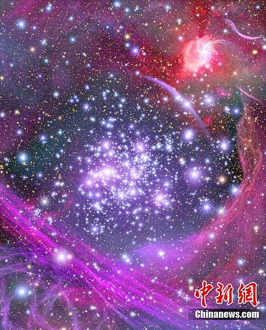 美國(guó)宇航局(NASA)近日公布了銀河系深處拱門星團(tuán)的最新藝術(shù)效果圖。改圖根據(jù)哈勃太空望遠(yuǎn)鏡和一些地面望遠(yuǎn)鏡拍攝的圖像描繪而成。拱門星團(tuán)存在于銀河系中心黑洞附近,包含有大約3萬個(gè)類似于太陽的恒星,而且該恒星團(tuán)的密度在銀河系所有已知同類天體構(gòu)造中是最大的。據(jù)測(cè)算,Arches的直徑約為三光年,其內(nèi)部天體密度超過太陽系約一百萬倍。