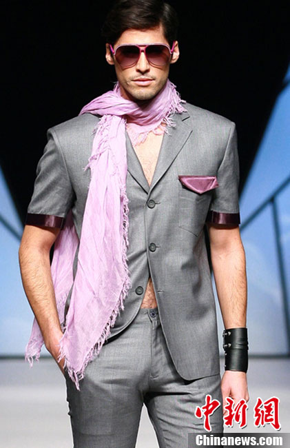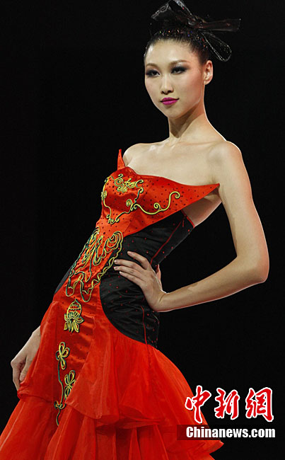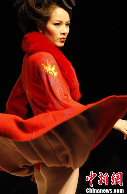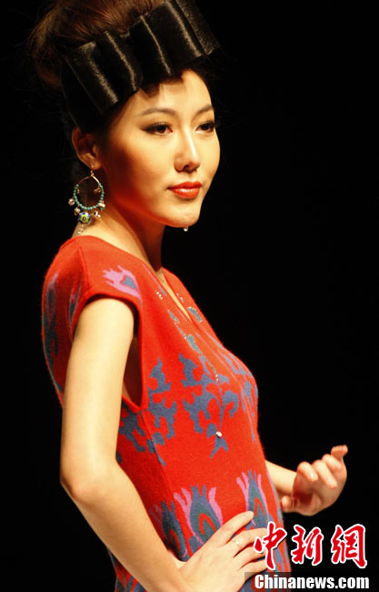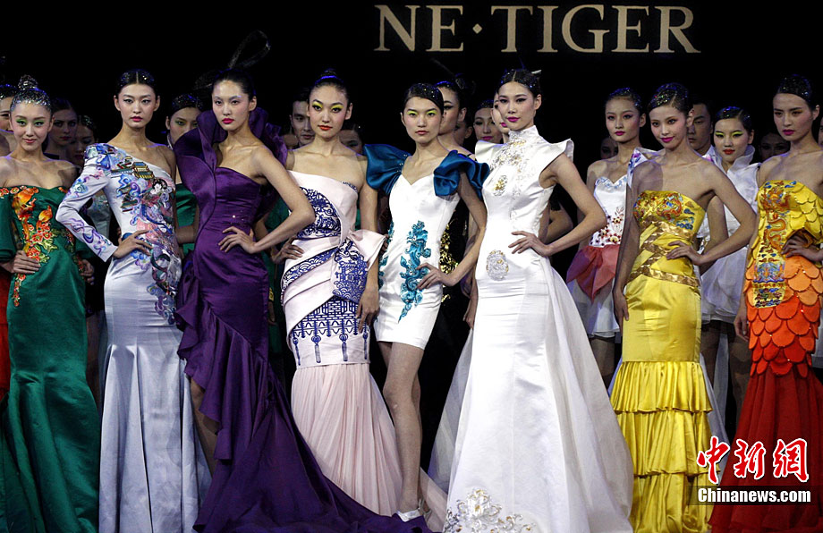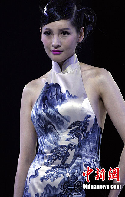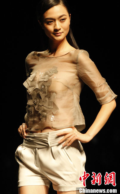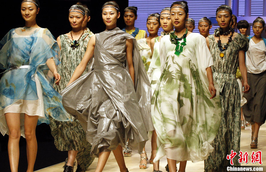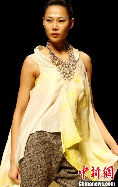 10月26日晚,正在北京舉行的中國國際時(shí)裝周上演EACHWAY·趙卉洲2011春夏時(shí)裝發(fā)布會(huì),該作品風(fēng)格簡約自然、清新優(yōu)雅、大氣內(nèi)斂,贏得眾多職場女性的青睞。2011春夏系列包含三大主題:“深海精靈”(藍(lán)綠色系)、“夢游幻境”(粉紫色系)、“雙色游戲”(米咖色系),圍繞摩登柔美和經(jīng)典的花卉印花兩大元素展開。中新社記者 錢興強(qiáng) 攝