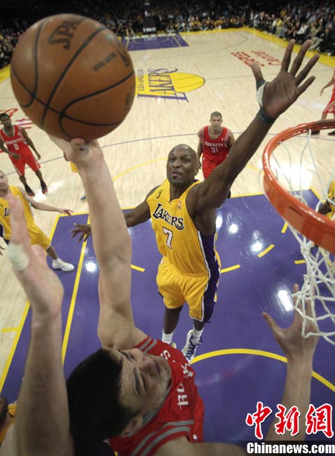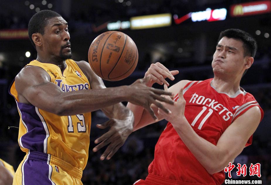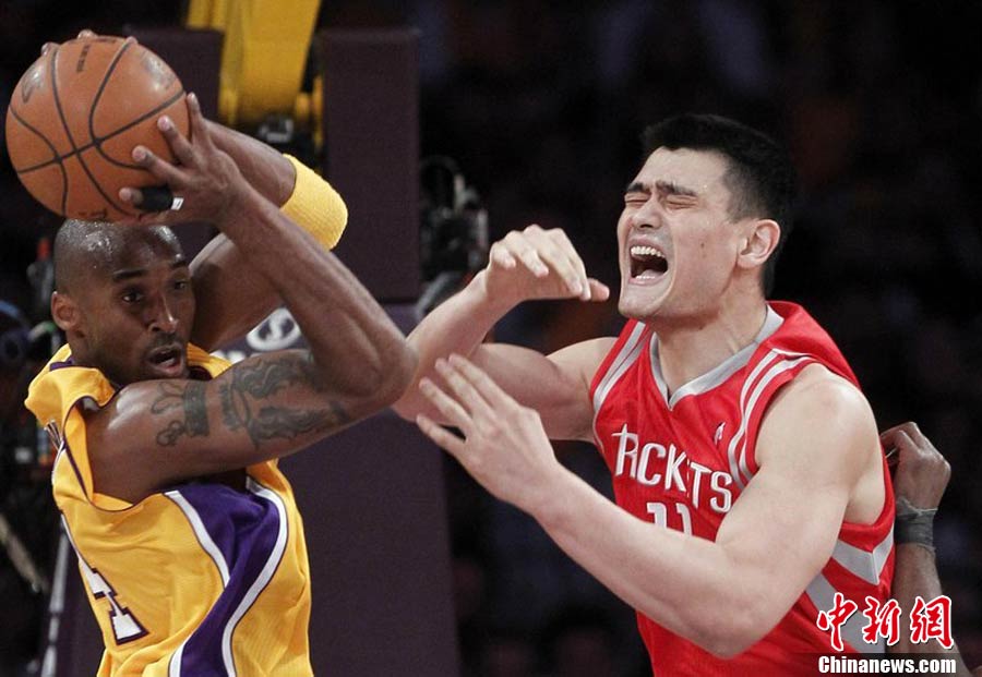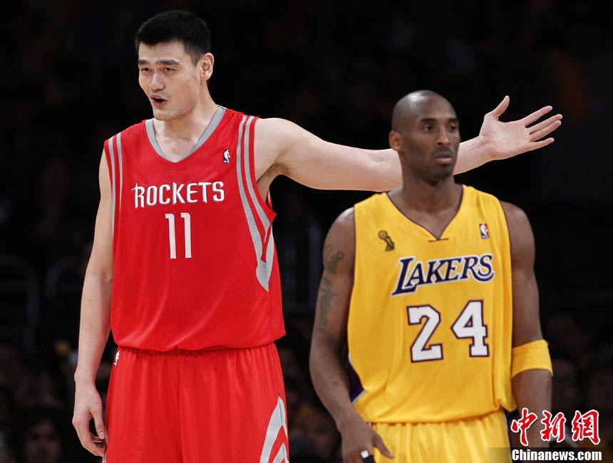 當(dāng)?shù)貢r(shí)間10月26日,洛杉磯,10/11NBA常規(guī)賽,休斯頓火箭客場110-112惜敗洛杉磯湖人。姚明出場23分21秒得到9分11個(gè)籃板,湖人隊(duì)科比拿下27分7次助攻。