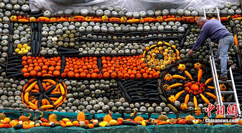 英國老農(nóng)用數(shù)百南瓜堆成牽引機(jī)車