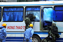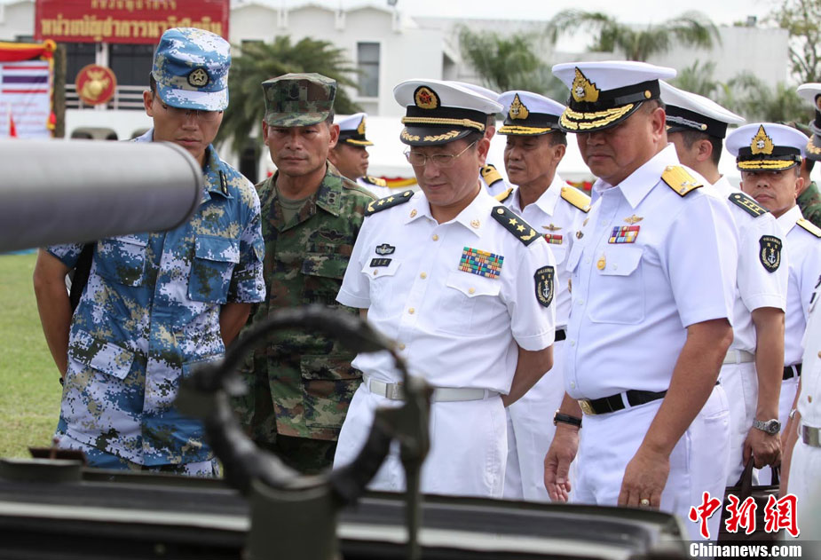 10月28日,代號(hào)為“藍(lán)色突擊—2010”的中、泰海軍陸戰(zhàn)隊(duì)聯(lián)合訓(xùn)練在泰國(guó)梭桃邑海軍基地拉開(kāi)帷幕。圖為中國(guó)海軍陸戰(zhàn)隊(duì)參訓(xùn)官兵在開(kāi)訓(xùn)儀式進(jìn)行技能演示。中新社記者 余顯倫 攝