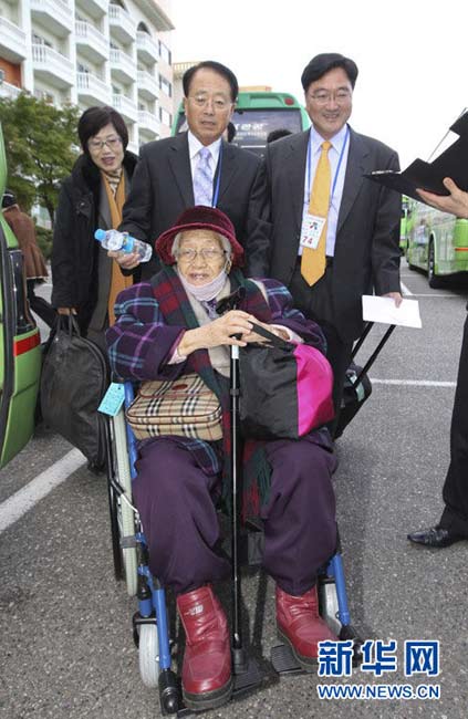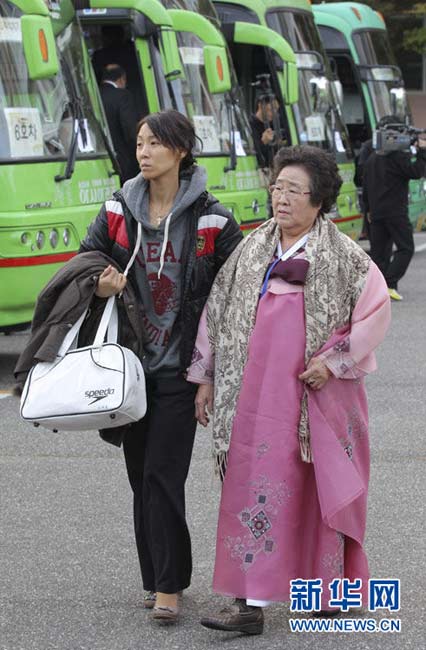 朝鮮和韓國(guó)的離散家屬30日開始在朝鮮境內(nèi)的金剛山地區(qū)舉行中秋會(huì)面活動(dòng)。這是朝韓離散家屬時(shí)隔13個(gè)月再次舉行中秋會(huì)面。圖片來源:新華網(wǎng)