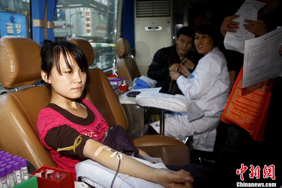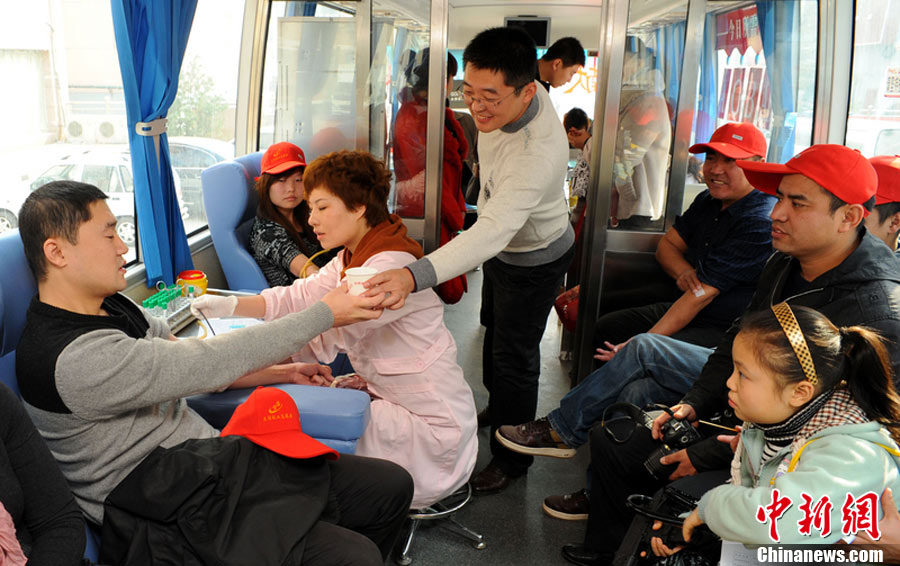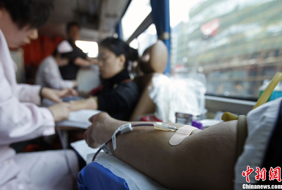 10月30日,各地市民踴躍無償獻血,應(yīng)對“血荒”。圖為長春市民在義務(wù)獻血車上獻血,應(yīng)對近日出現(xiàn)的“血荒”。圖片來源:CFP視覺中國