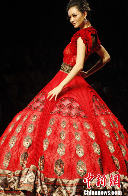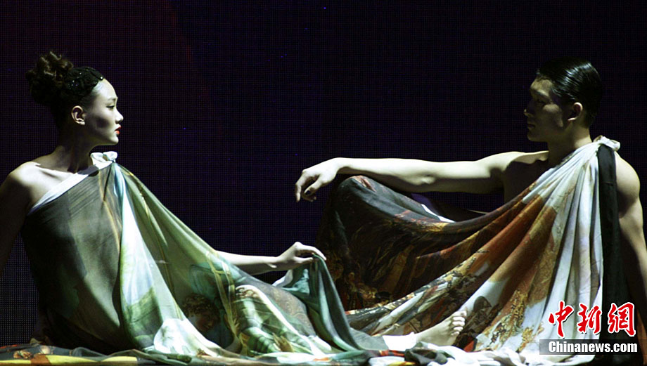 10月31日晚,“東方夏娃”托尼、李當岐、張肇達時裝藝術秀在北京舉行,這場秀是由3位在文化藝術領域幾乎沒有“交集”的大師級人物共同主創(chuàng),他們是國內(nèi)知名教育學者李當岐教授、英國頂級雕塑家托尼、杰出服裝設計師張肇達。中新社記者 盛佳鵬 攝