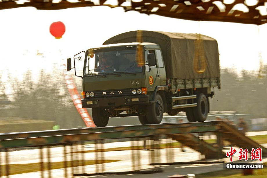 10月31日,空軍成立61年來規(guī)模最大的后勤專業(yè)技能大比武在沈陽落幕。在3天的時間里,784名后勤精英在49個課目中進(jìn)行比拼。參加這次大比武的人員來自空軍直屬及所轄7個軍區(qū)空軍、空降兵部隊的各級后勤系統(tǒng)。今年3月以來,空軍以《空軍后勤訓(xùn)練和考核大綱》等為基本依據(jù),在空軍后勤現(xiàn)有的軍需、油料、衛(wèi)生、軍事交通、機(jī)場營房等7個專業(yè)中逐級進(jìn)行全員選拔。七大專業(yè)既包括輕武器分解結(jié)合與實彈射擊、炊事、車輛駕駛等軍隊通用訓(xùn)練課目,也包括輸油管線搶修、機(jī)場搶修、獵鷹驅(qū)鳥和獵槍打靶等具有濃厚空軍色彩的課目。圖為駕駛員選手比試通過高架橋。譚超 攝 圖片來源:CNSPHOTO