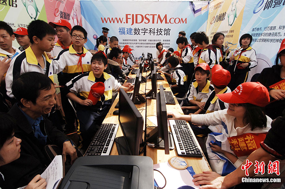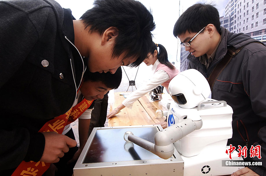 11月2日,福州科普愛好者與來自臺灣的機器人下棋。當日,海峽兩岸科普嘉年華活動在福州舉行,30多位臺灣科普專家攜15項臺灣科技成果到場,與福州民眾一起互動。中新社記者 王東明 攝