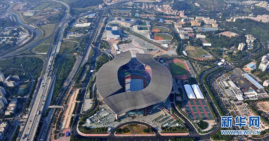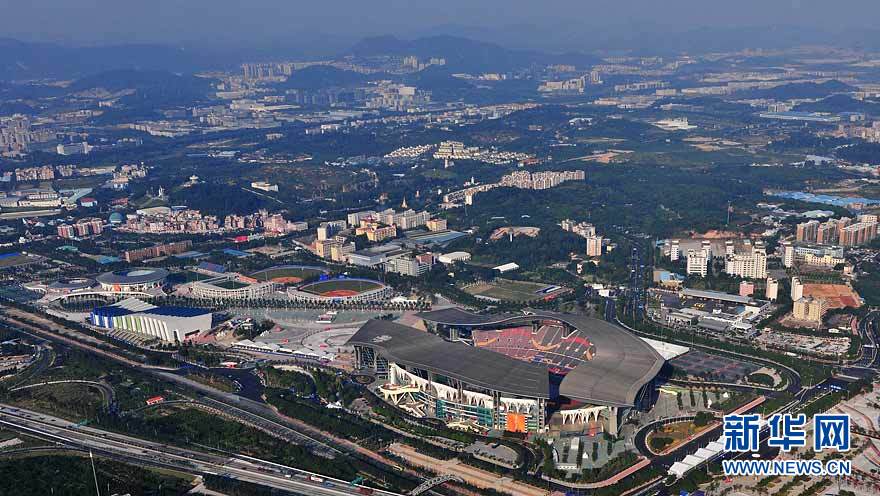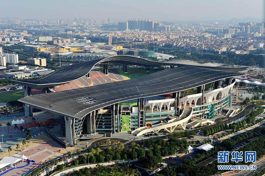 圖為航拍的廣東奧體游泳館(攝于10月29日)。在廣州亞運(yùn)會(huì)期間,廣東奧林匹克體育中心場(chǎng)館群將舉行田徑、游泳、射擊、網(wǎng)球、棒球等項(xiàng)目的比賽。劉大偉 攝 圖片來(lái)源:新華網(wǎng)