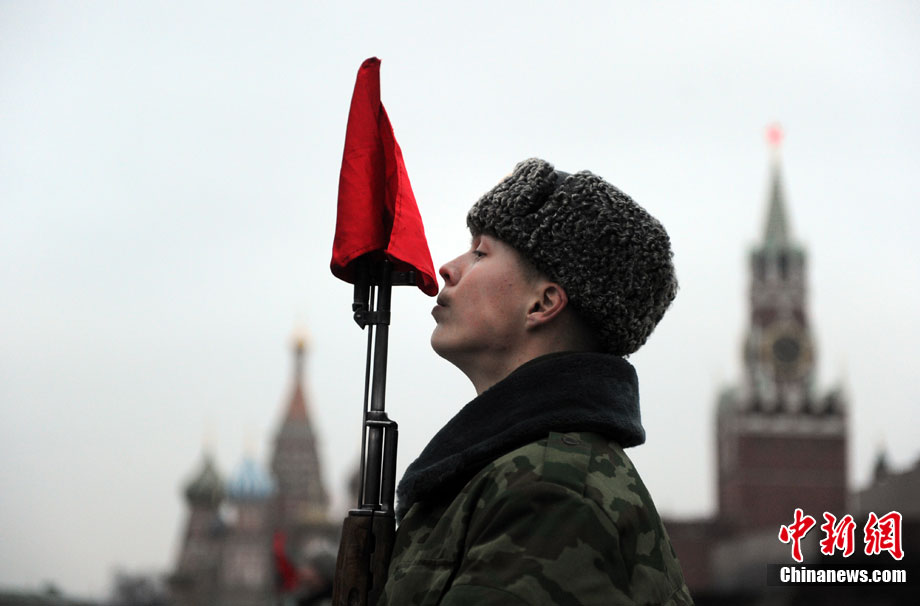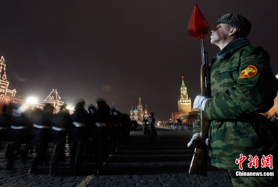 11月3日,準(zhǔn)備參加紅場(chǎng)閱兵的士兵在俄羅斯首都莫斯科進(jìn)行彩排。11月7日俄羅斯將在莫斯科紅場(chǎng)舉行盛大閱兵儀式,紀(jì)念1941年11月7日的紅場(chǎng)閱兵69周年。
