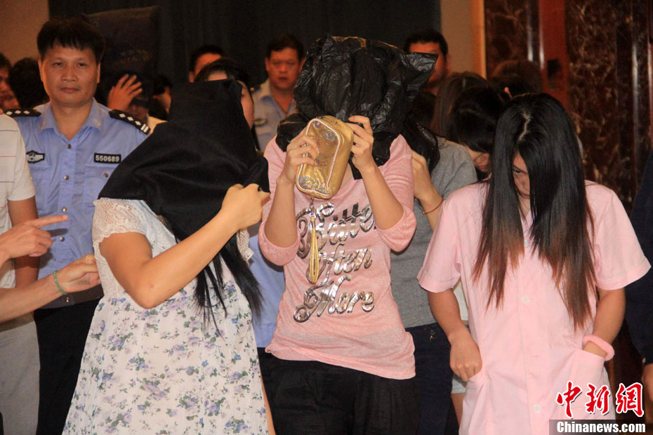 目前,老板和“媽咪”已被刑事拘留,6名賣淫嫖娼人員均被行政拘留并處罰款,該酒店桑拿中心被責令停業(yè)整頓3個月。 圖為涉黃人員中有孕婦身影。中新社發(fā) 朱朝峰 攝