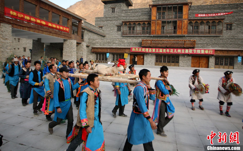 11月6日,四川汶川數(shù)千民眾穿著盛裝跳起羊皮鼓舞,歡度災(zāi)后重建基本完成后的第一個(gè)羌?xì)v新年。羌?xì)v年是羌族最重要的傳統(tǒng)節(jié)日,時(shí)間是每年的農(nóng)歷十月初一,羌族人通常用祭祀、唱酒歌、跳鍋莊舞等活動(dòng)慶祝這一節(jié)日。