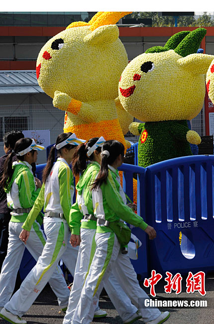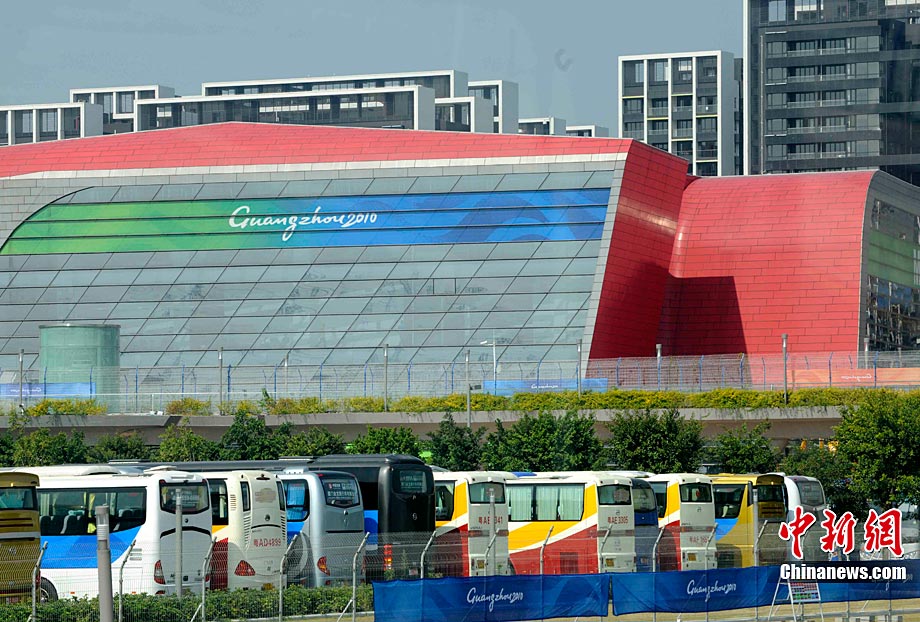 11月9日,廣州亞運會的志愿者們前往天河體育中心服務。中新社記者 賈國榮 攝
