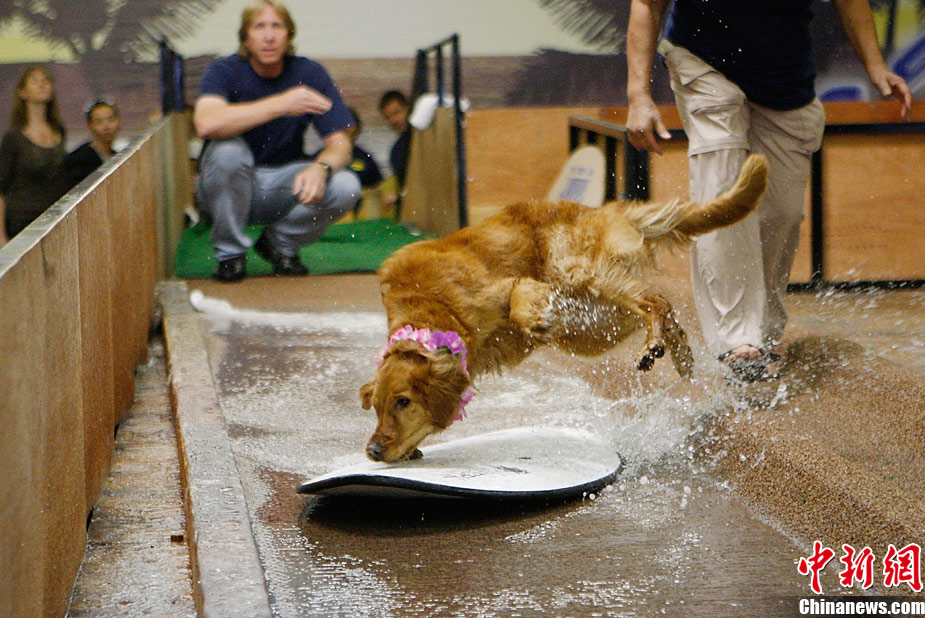 11月8日,在美國洛杉磯舉行了一場別開生面的狗狗滑水大賽,參賽的可愛狗狗們在“賽道”上展現(xiàn)滑水“絕技”。