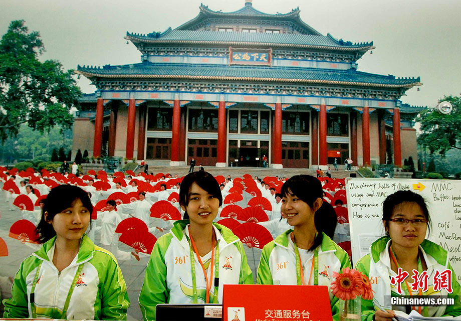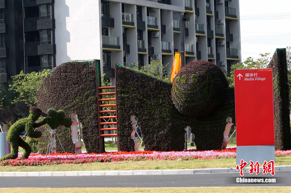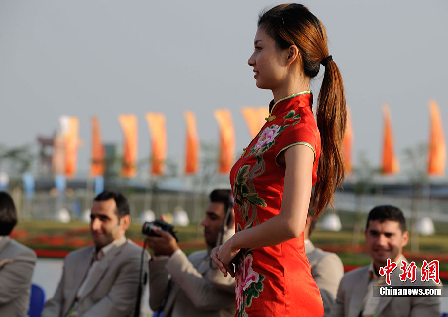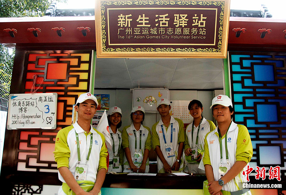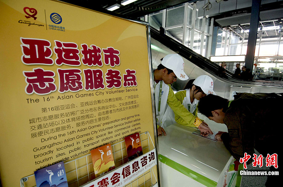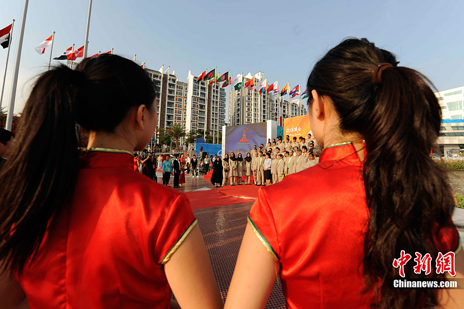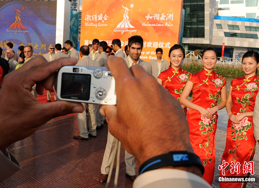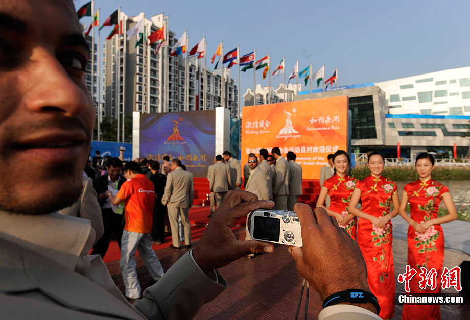 11月9日,廣州亞運(yùn)村的中國(guó)禮儀美女歡迎各國(guó)代表團(tuán)入駐。中新社記者 賈國(guó)榮 攝