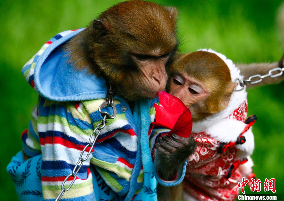 隨著11月11日“光棍節(jié)”的臨近,云南野生動(dòng)物園忙著在園內(nèi)舉行一次“動(dòng)物相親大會(huì)”,為單身動(dòng)物們解決終身大事。圖為11月10日,兩只猴子玫瑰花瓣后說(shuō)“悄悄話”。 中新社記者 劉冉陽(yáng) 攝