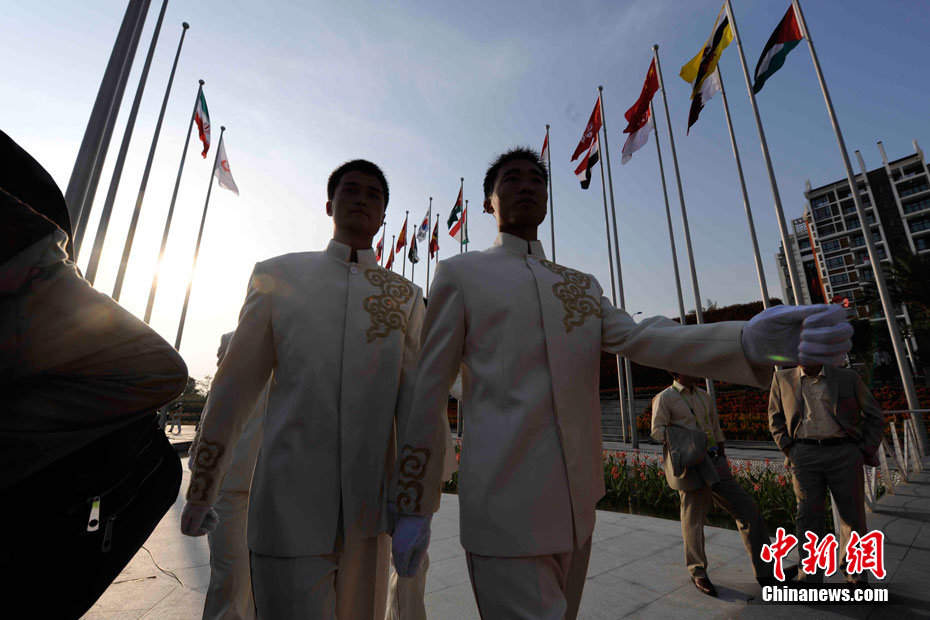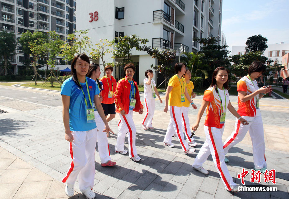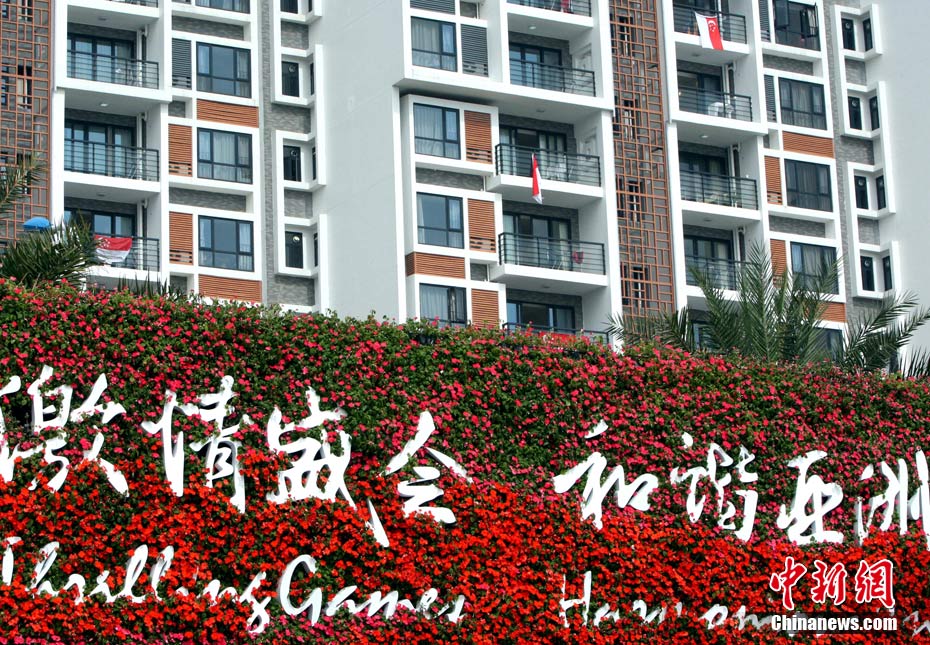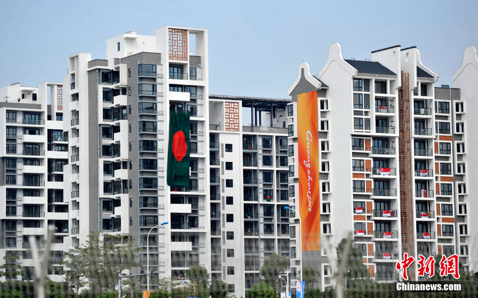 和歷屆亞運(yùn)會(huì)不同,廣州亞運(yùn)會(huì)沒有延續(xù)“亞運(yùn)村”的概念,而是打造了一座亞運(yùn)城,而運(yùn)動(dòng)員村則是亞運(yùn)城的核心。運(yùn)動(dòng)員村位于亞運(yùn)城內(nèi),總建筑面積59.1332萬平方米。運(yùn)動(dòng)員村共有49棟公寓樓、3598套公寓、9272間客房。應(yīng)該說,運(yùn)動(dòng)員村是一個(gè)高度專業(yè)化、集約化和規(guī)范化的居住區(qū)域,這里將為運(yùn)動(dòng)員及隨隊(duì)官員提供住宿分配、客房、洗衣、布草洗滌、居民服務(wù)中心等住宿服務(wù),全部是一條龍服務(wù)。圖為運(yùn)動(dòng)員公寓外景,不少運(yùn)動(dòng)員將自己國(guó)家的國(guó)旗懸掛在窗外。中新網(wǎng)記者 金碩 攝