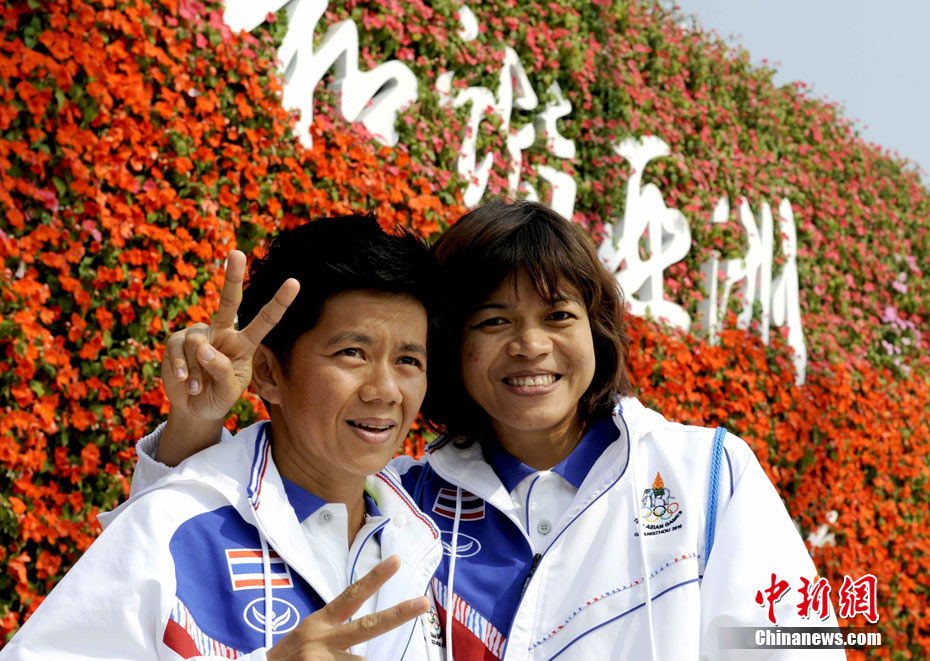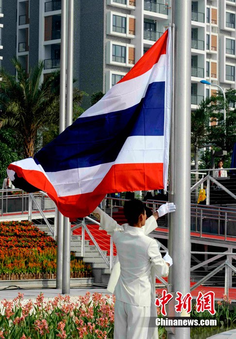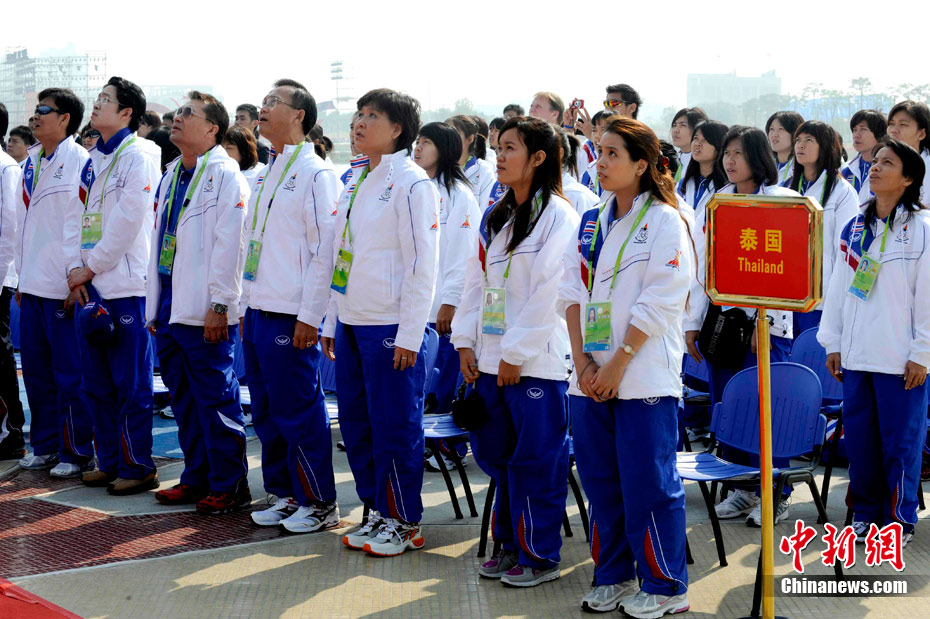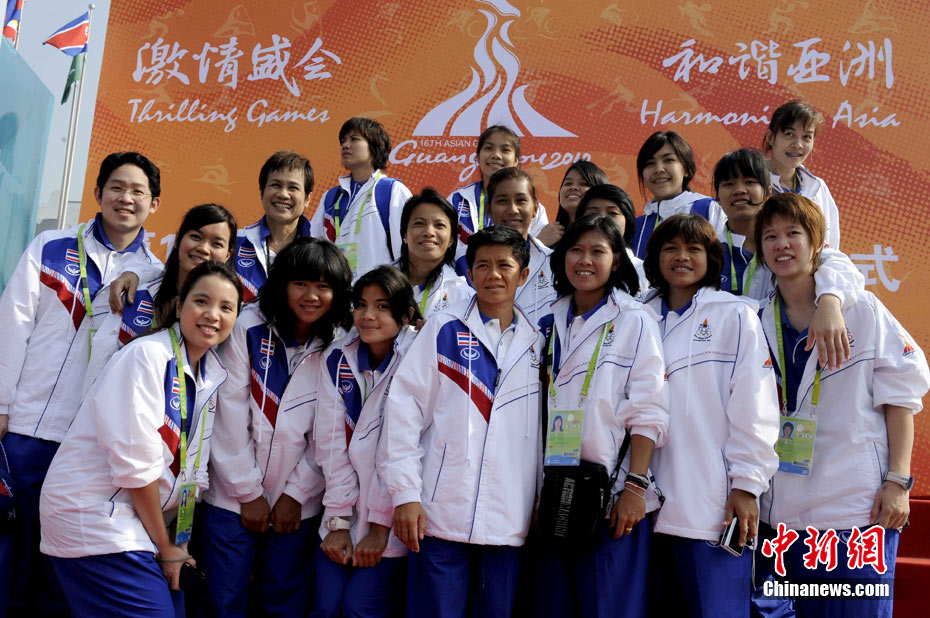 11月11日,泰國(guó)代表團(tuán)舉行廣州亞運(yùn)會(huì)亞運(yùn)村升旗儀式。圖為泰國(guó)運(yùn)動(dòng)員在現(xiàn)場(chǎng)合影留念。中新社記者 王東明 攝