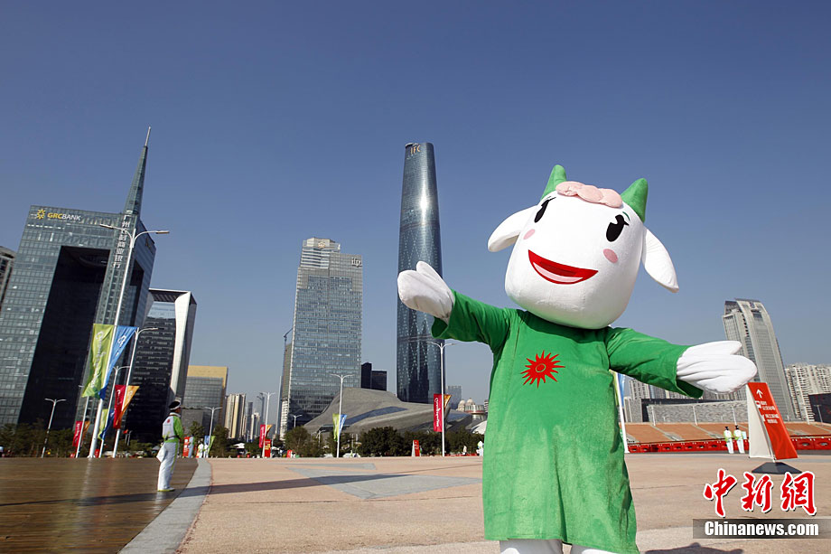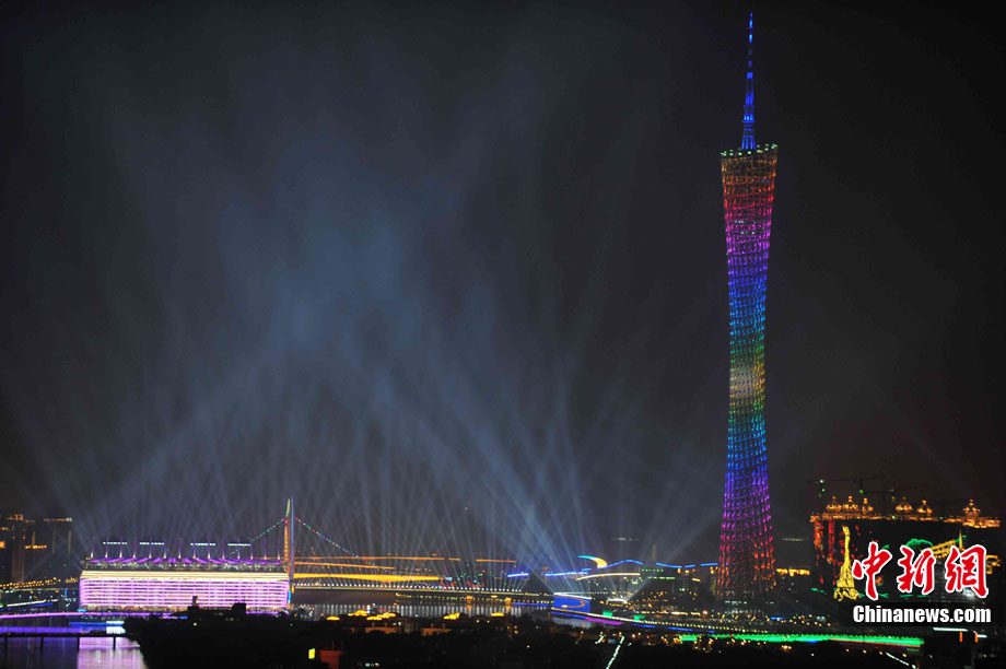 2010年11月12日,廣州海心沙島,16屆亞運會開幕式今晚將在這里舉行。中新社記者 盛佳鵬 攝。