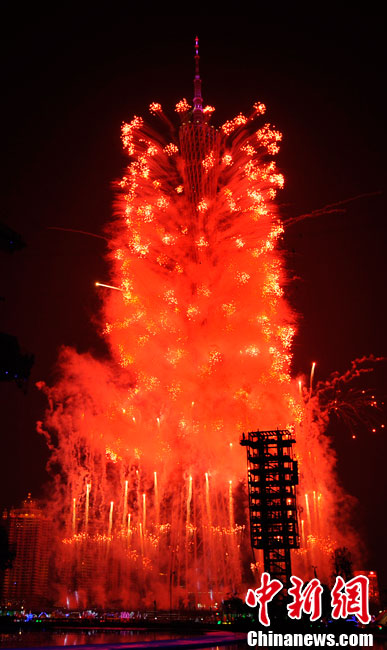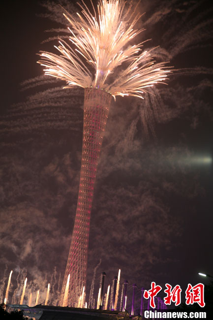 11月12日晚,第十六屆亞洲運(yùn)動會在廣州開幕,16萬發(fā)煙花組成的美麗畫卷點(diǎn)亮了美麗珠江的夜空。
