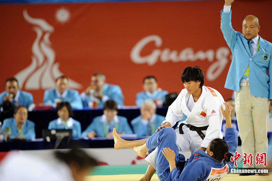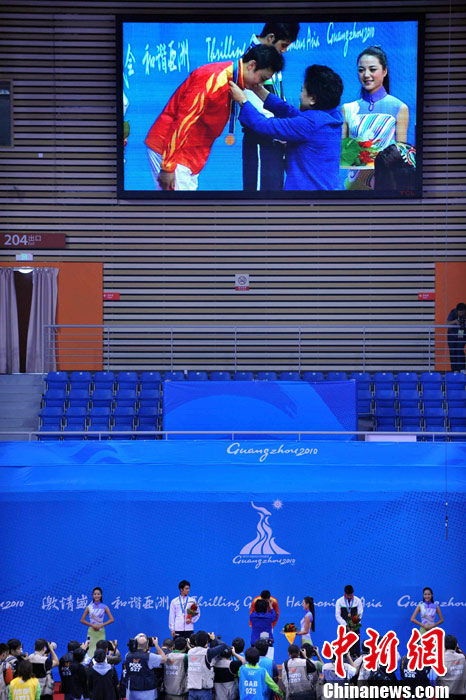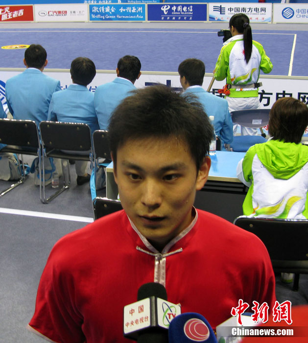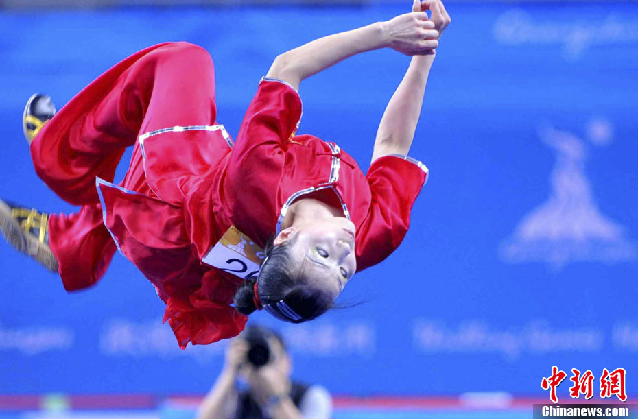 11月13日上午,中國選手袁曉超奪得男子長拳冠軍,這也是本屆亞運會誕生的首枚金牌。 中新社記者 柯小軍 攝