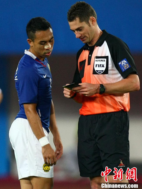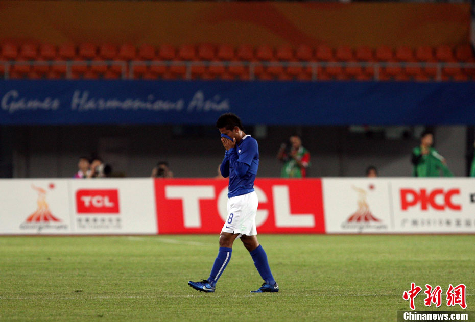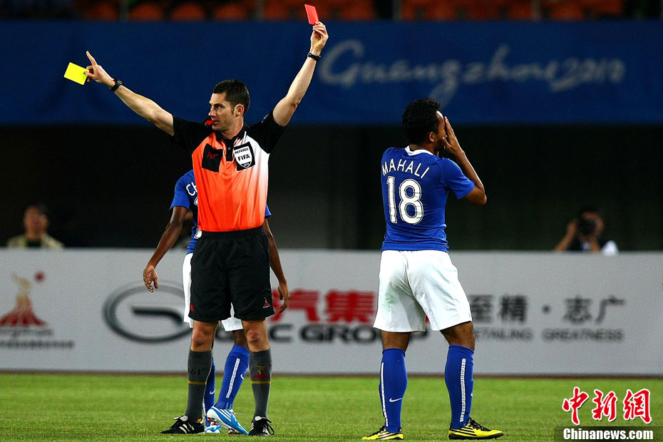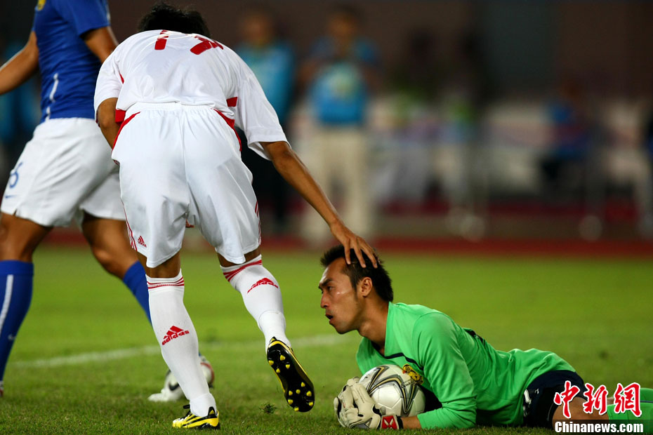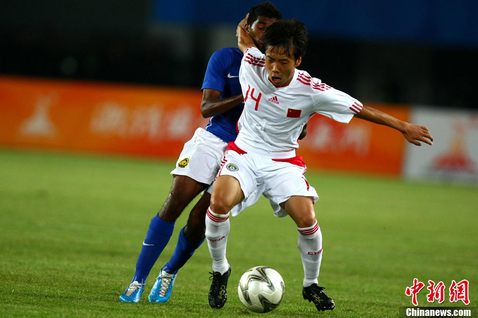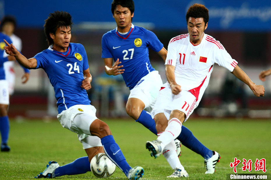 11月13日,在廣州天河體育場(chǎng)進(jìn)行的亞運(yùn)會(huì)男子足球小組賽A組第31場(chǎng)中國(guó)隊(duì)對(duì)陣馬來(lái)西亞的生死之戰(zhàn),中國(guó)隊(duì)以3比0戰(zhàn)勝馬來(lái)西亞隊(duì)小組出線。中新社記者 富田 攝