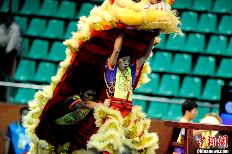 11月14日,廣州亞運(yùn)各項(xiàng)精彩賽事繼續(xù)進(jìn)行,組委會(huì)在比賽間隙舉辦各種精彩的文藝表演,調(diào)動(dòng)賽場(chǎng)氣氛。 中新社記者 王東明 攝