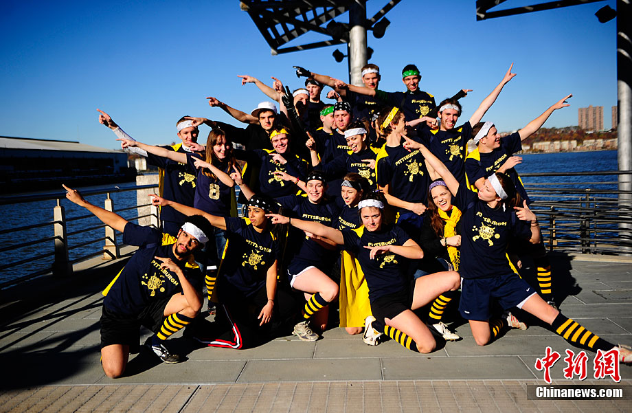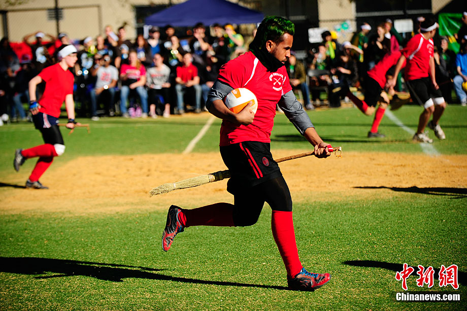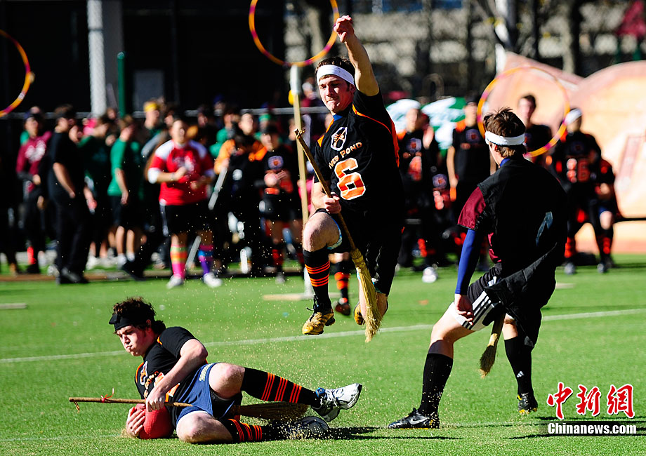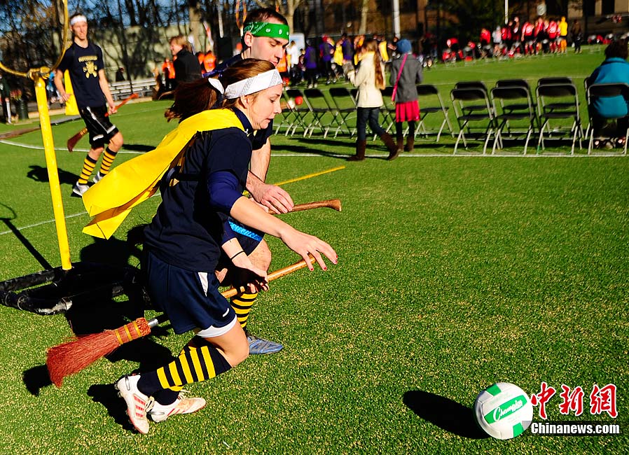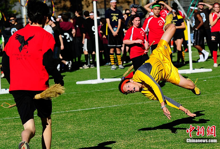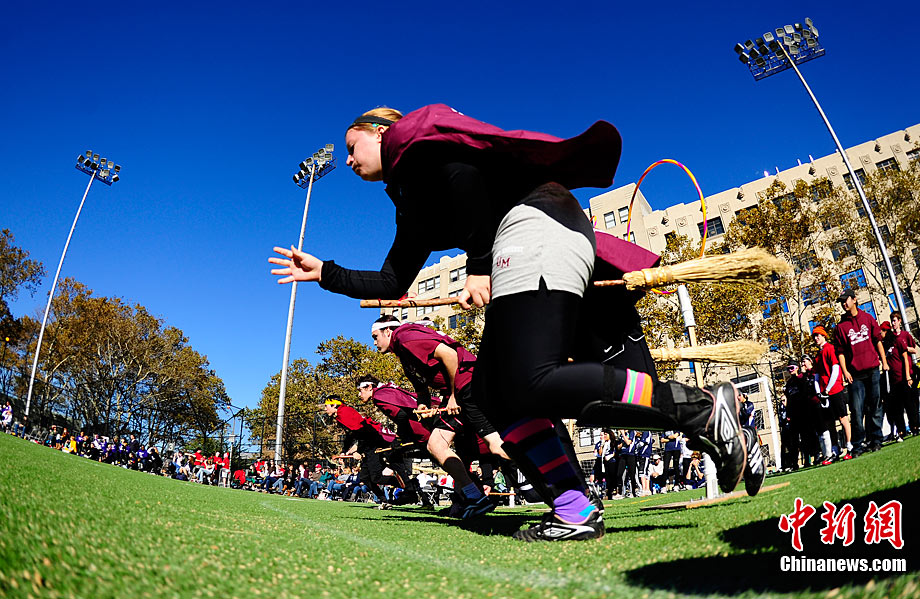 當(dāng)?shù)貢r(shí)間11月13日,數(shù)百名哈利波特迷們?cè)诿绹?guó)紐約舉行了第四屆魁地奇世界杯比賽?催^(guò)《哈利·波特》小說(shuō)或電影的人都會(huì)對(duì)其中描寫的魁地奇球賽印象深刻,F(xiàn)實(shí)版的魁地奇比賽嚴(yán)格遵循原著風(fēng)格,并發(fā)展成了一項(xiàng)混合手球、躲避球,還摻雜了一點(diǎn)曲棍球的新奇運(yùn)動(dòng)。