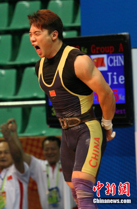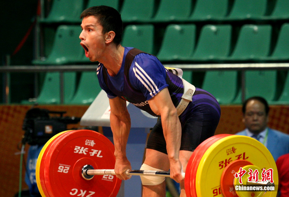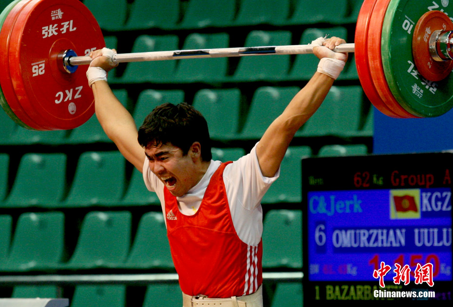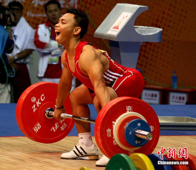 11月14日,廣州亞運(yùn)會(huì)男子舉重62公斤級(jí)比賽在東莞體育館舉行,賽場(chǎng)上不斷傳出運(yùn)動(dòng)員大吼聲。大聲吼叫不但能為自己打氣,同時(shí)還能使胸腔腹腔壓力急劇升高,使上下肢和腰背肌有了更穩(wěn)定的支撐點(diǎn),更容易取得好的成績(jī),大吼已經(jīng)成為舉重比賽中最帥氣的一道風(fēng)景。中新社記者 張茵 攝