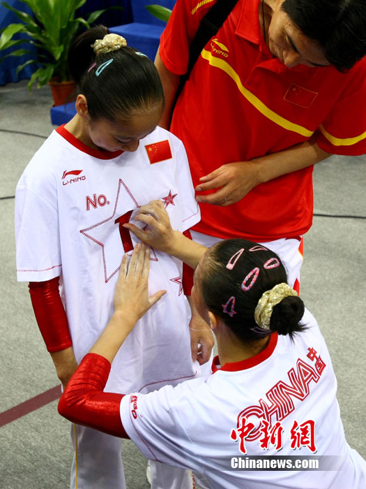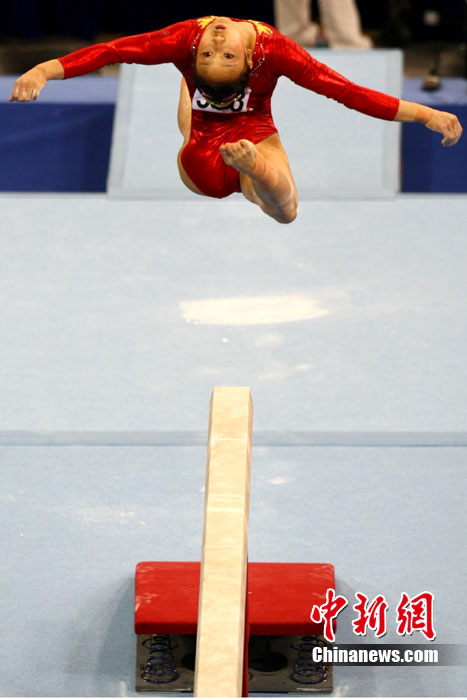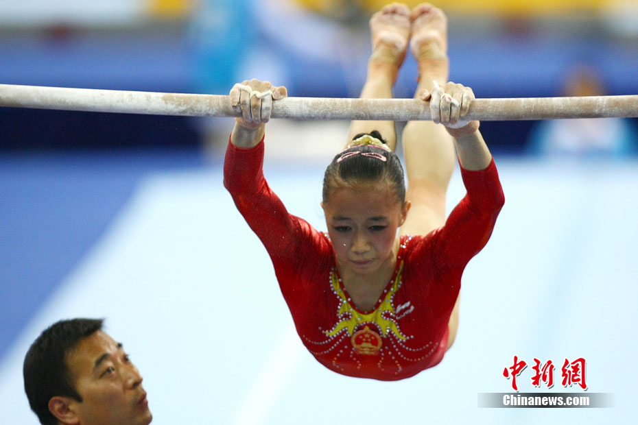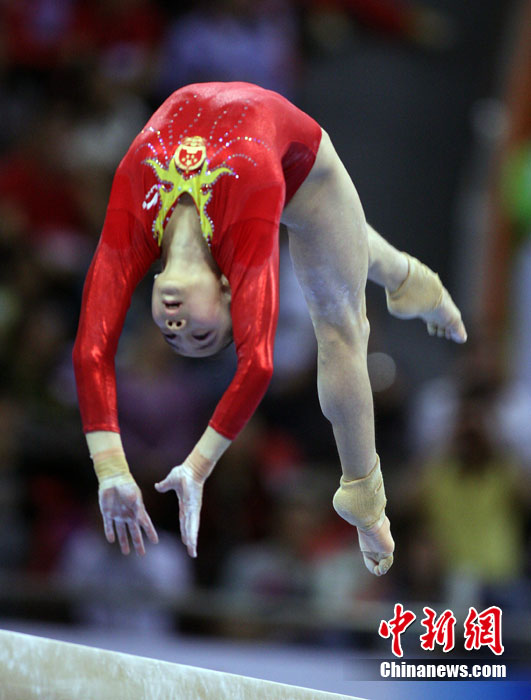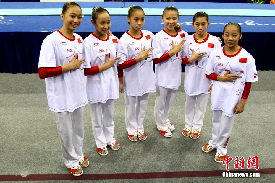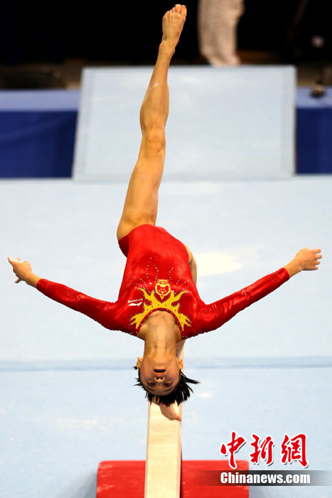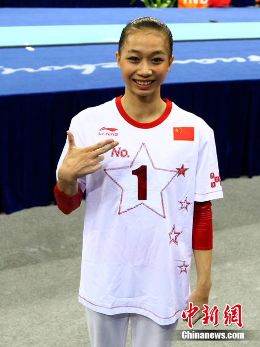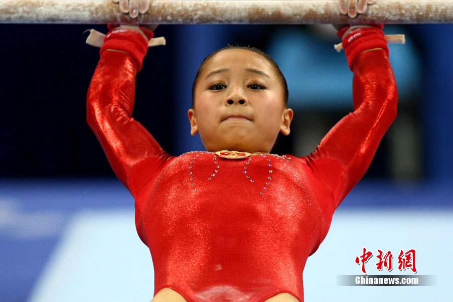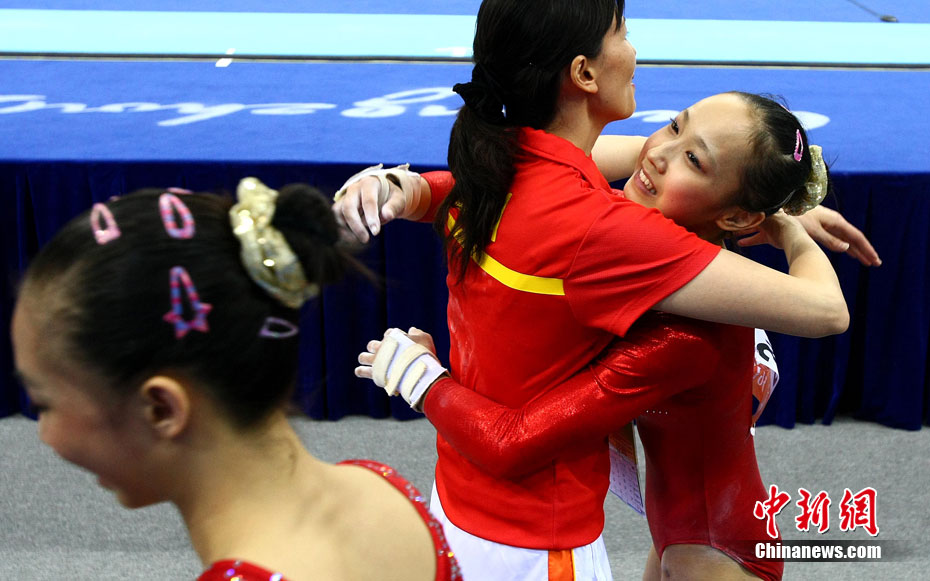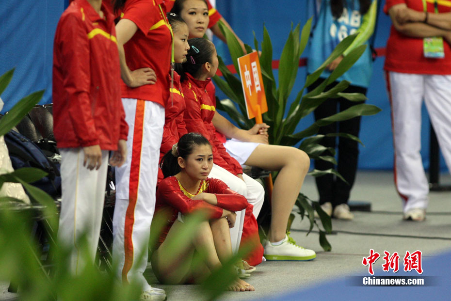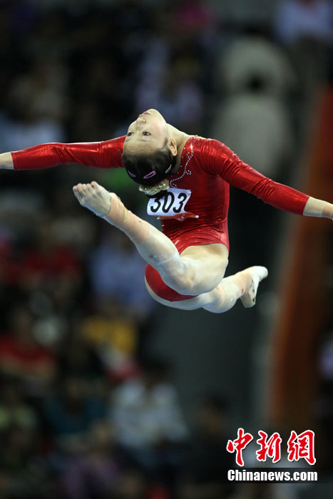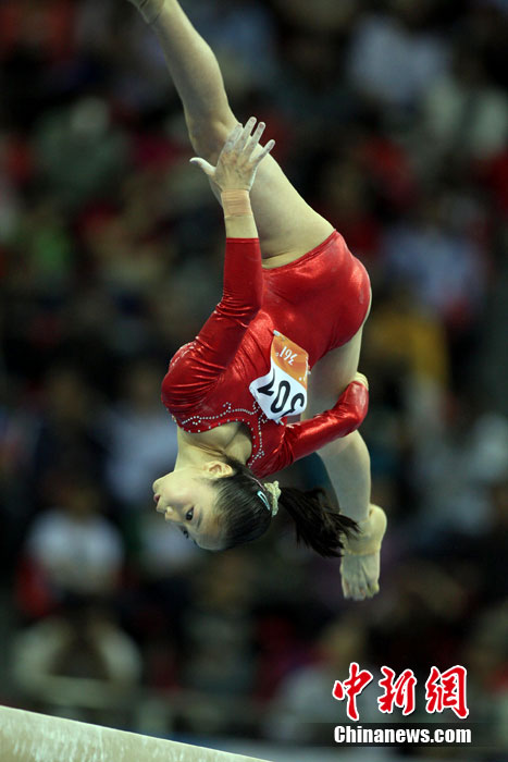 11月14日,在廣州亞運(yùn)會女子體操團(tuán)體決賽中,中國隊(duì)擊敗日本隊(duì)奪冠,實(shí)現(xiàn)了亞運(yùn)會的“十連冠”。中新社記者 富田 攝