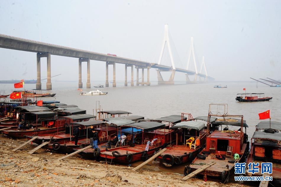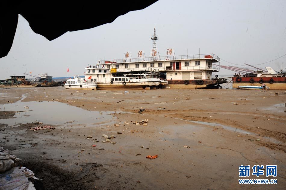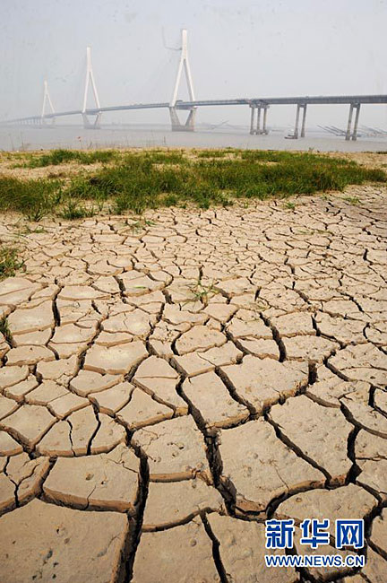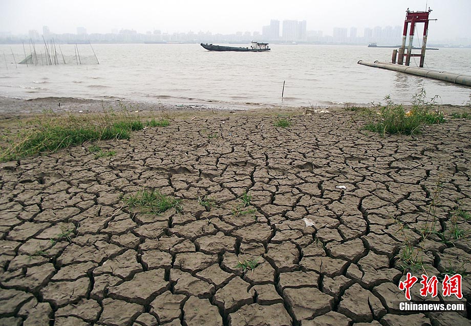 截至2010年11月14日17時,長江南京段水位降至4.08米,大片江岸河床裸露。近期,受中上游枯水和區(qū)域降雨量減少等因素影響,長江南京段水位連續(xù)下降。圖為11月14日,長江南京段南側(cè)江岸河床裸露,土層龜裂。圖片來源:CNSPHOTO 安東 攝