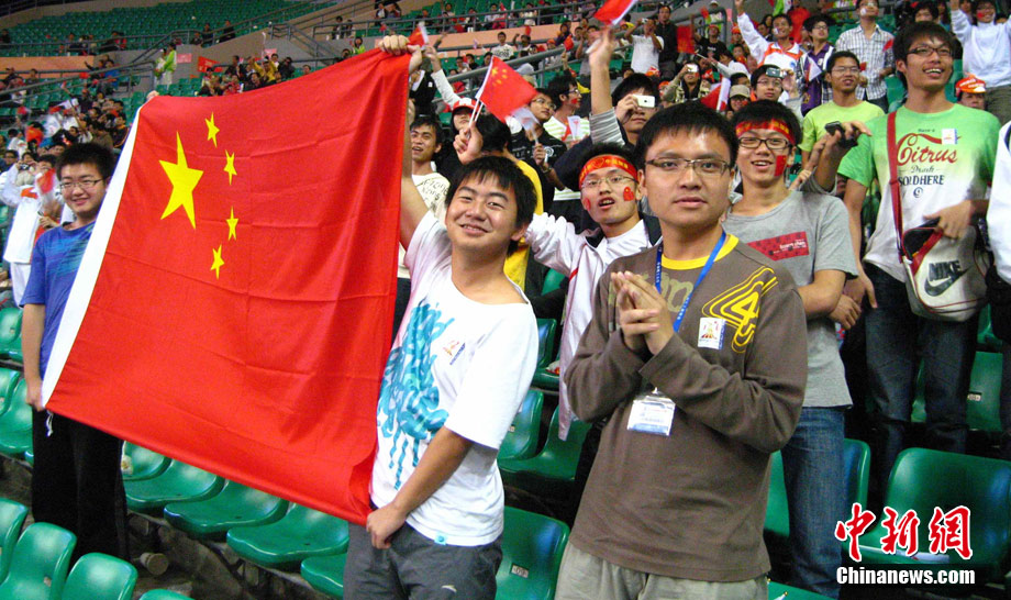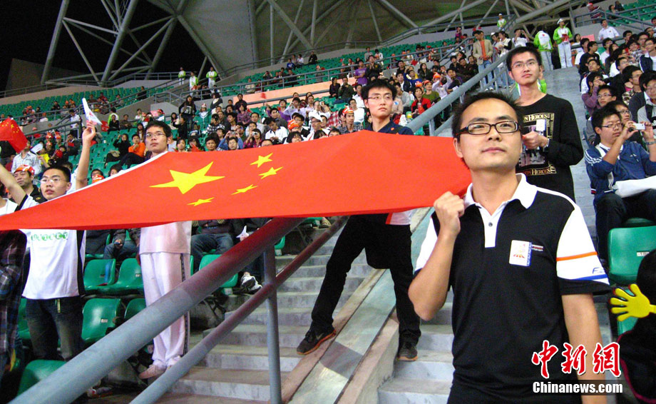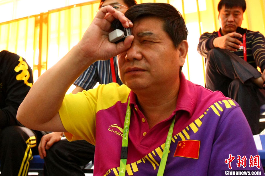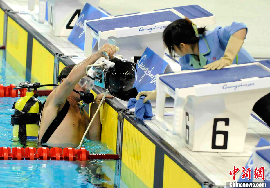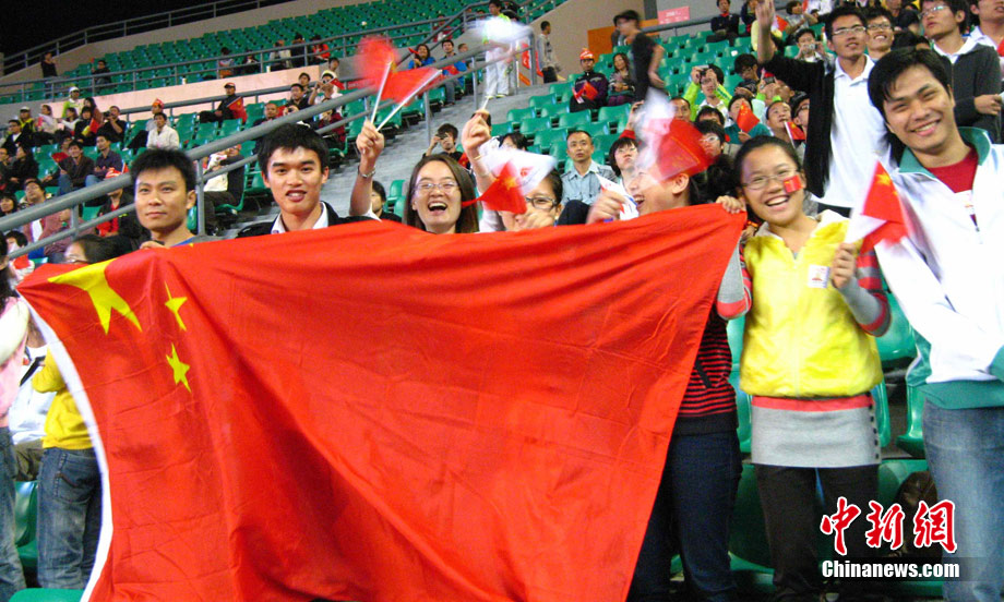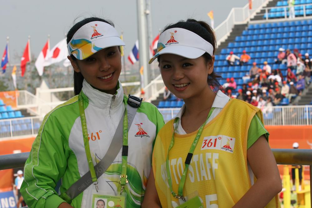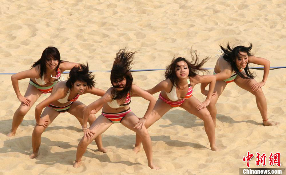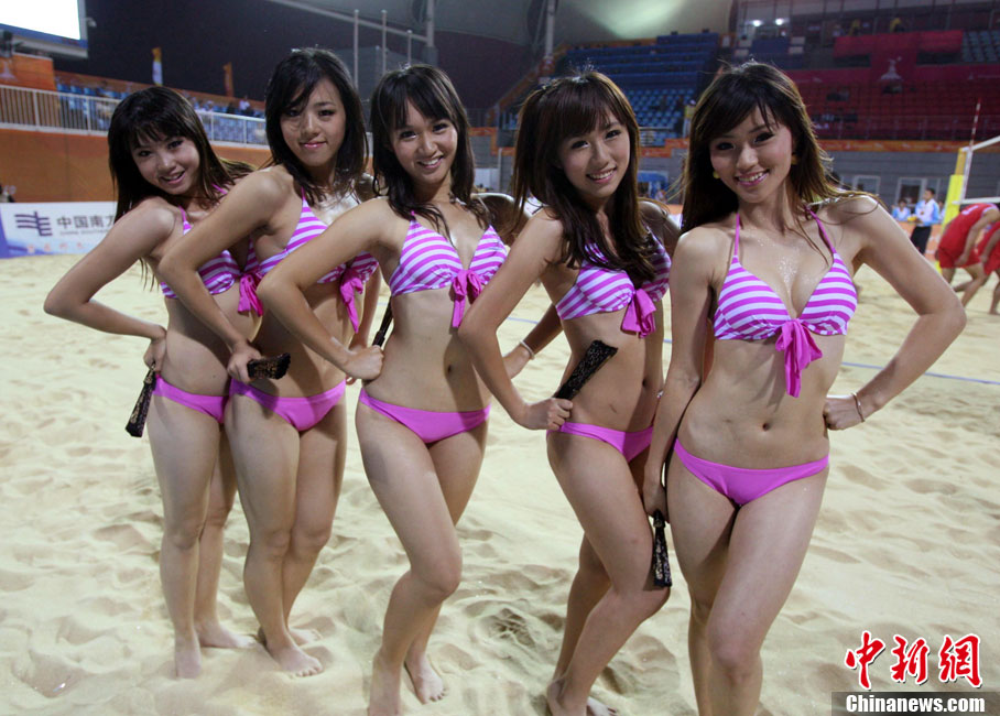 11月16日,在廣州亞運(yùn)會沙灘排球賽場上,一群身穿比基尼擁有火辣身材的“沙灘寶貝”成為賽場邊一道美麗風(fēng)景。 中新社記者 湯彥俊 攝