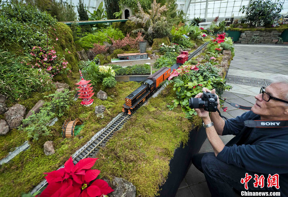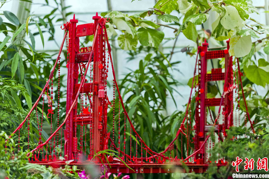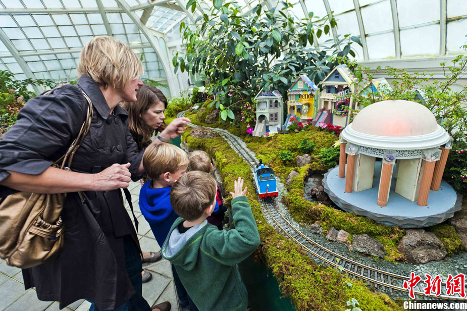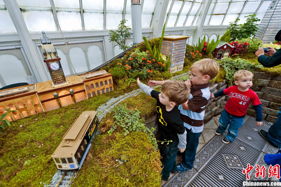 當(dāng)?shù)貢r(shí)間11月19日,美國(guó)舊金山金門公園展出藝術(shù)家以廢舊物品制成的袖珍版城市地標(biāo),作為公園140周年紀(jì)念的特別禮物,以環(huán)保節(jié)能主題再現(xiàn)這座城市的獨(dú)特魅力。圖為兒童對(duì)好奇觀看用舊刀叉、牙簽、酒瓶塞、刮刀等搭建的舊金山輪渡大廈。中新社發(fā) 陳鋼 攝