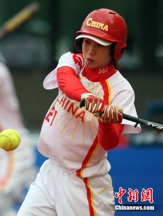 11月20日,廣州亞運(yùn)會(huì)壘球預(yù)賽第5場(chǎng),中國(guó)隊(duì)以9比0戰(zhàn)勝泰國(guó)隊(duì),取得預(yù)賽2連勝。中國(guó)隊(duì)譚瑛揮棒擊球。中新社記者 湯彥俊 攝