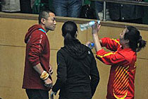 11月21日晚,2010年廣州亞運會天河體育館羽毛球賽場舉行男子單打決賽,中國隊的林丹對陣馬來西亞的李宗偉。最終,林丹2-1戰(zhàn)勝李宗偉奪冠。中新社記者 富田 攝