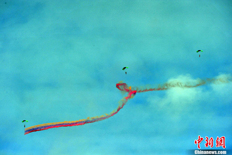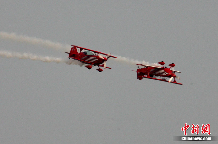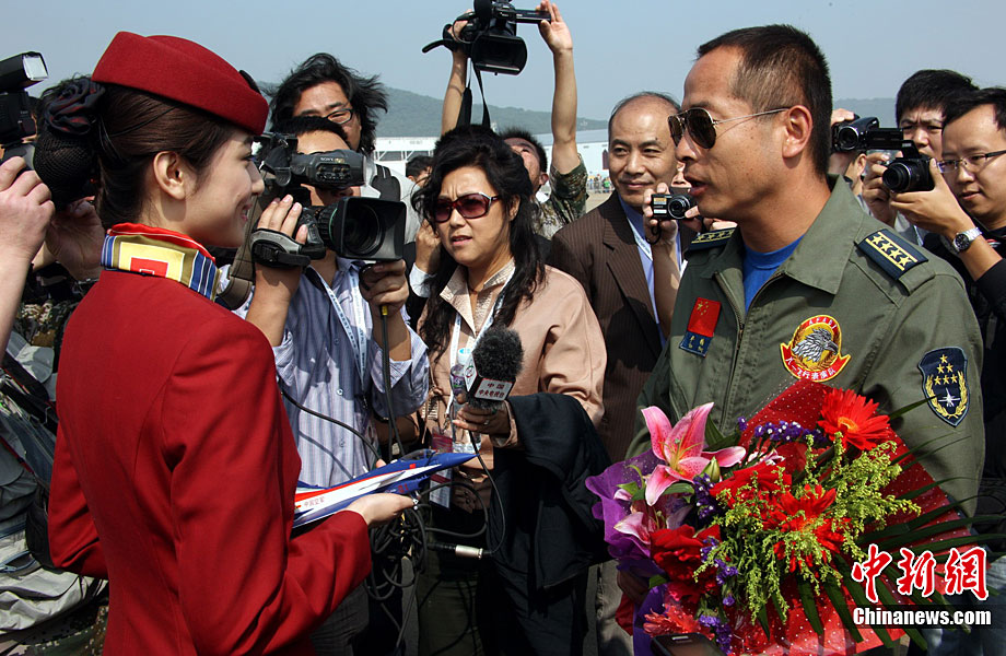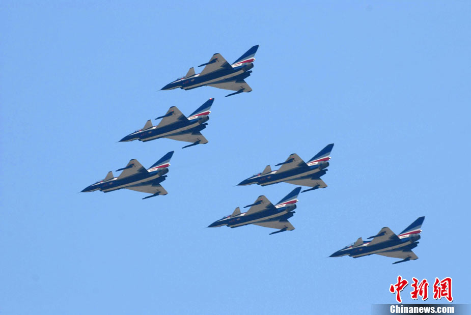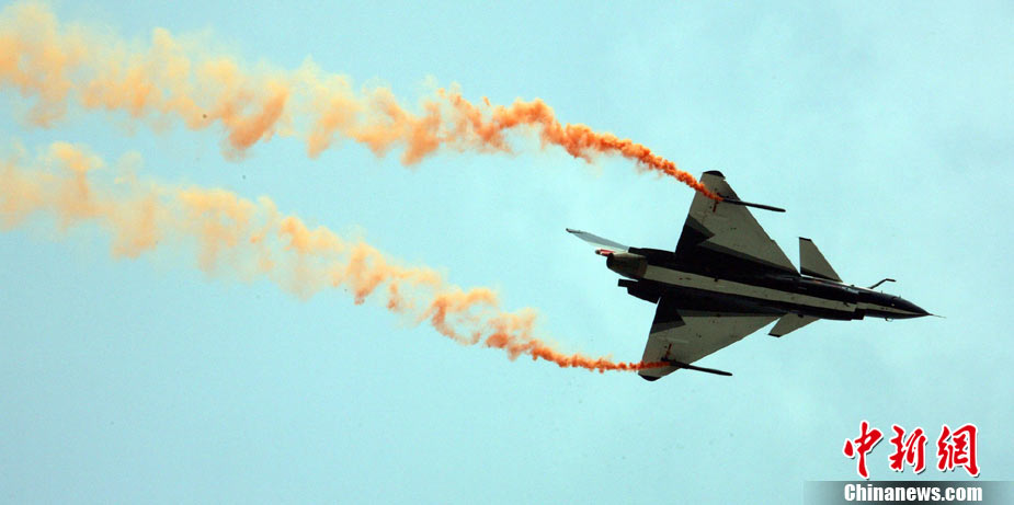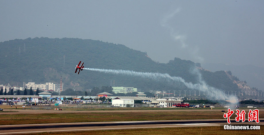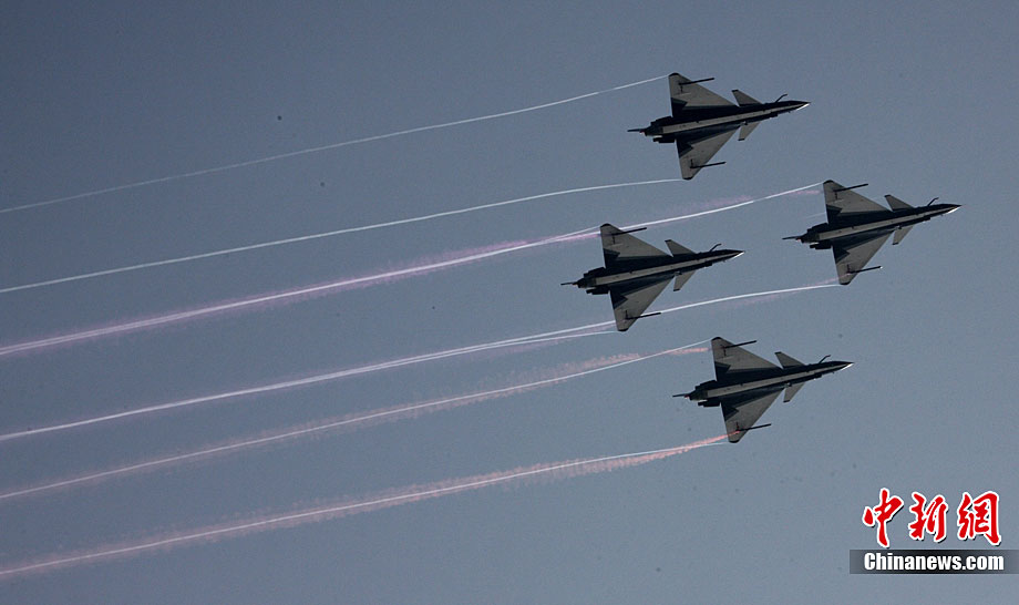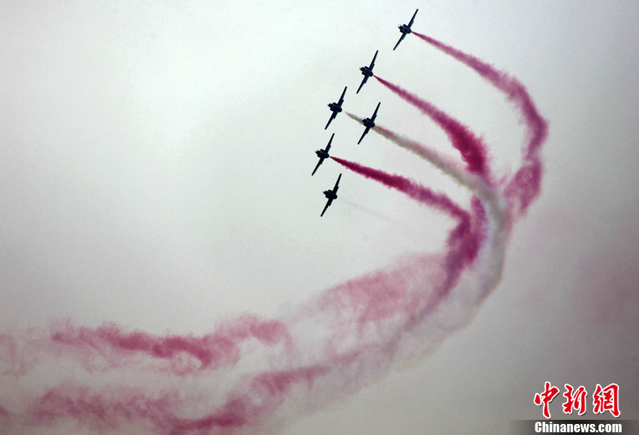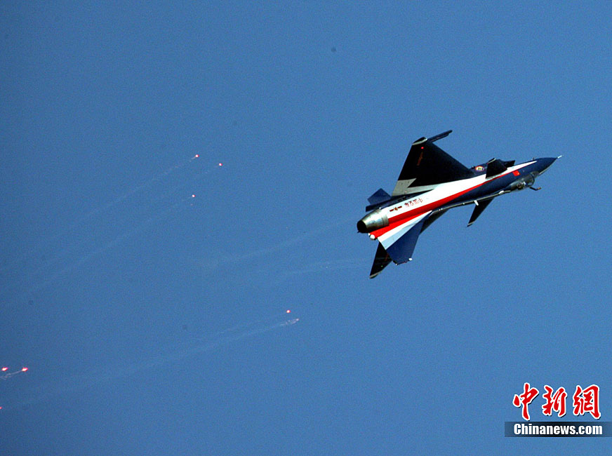 11月21日,為期6天的第八屆中國國際航空航天博覽會在珠海落幕。圖為中國空軍八一飛行表演隊表演結(jié)束后,機務(wù)人員試車作準備飛行工作。 中新社發(fā) 譚超 攝