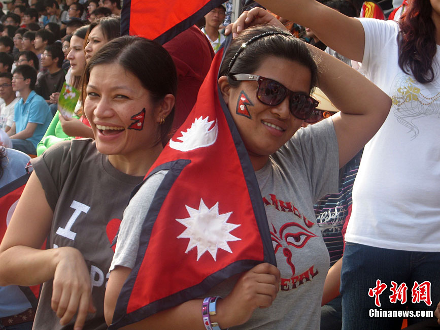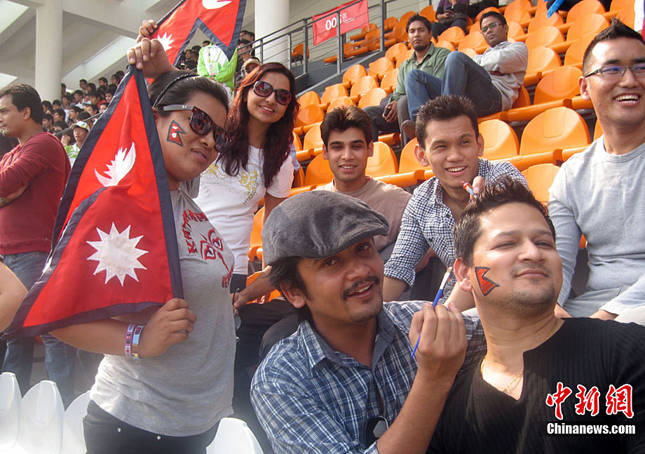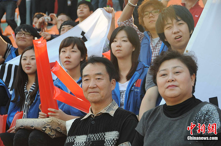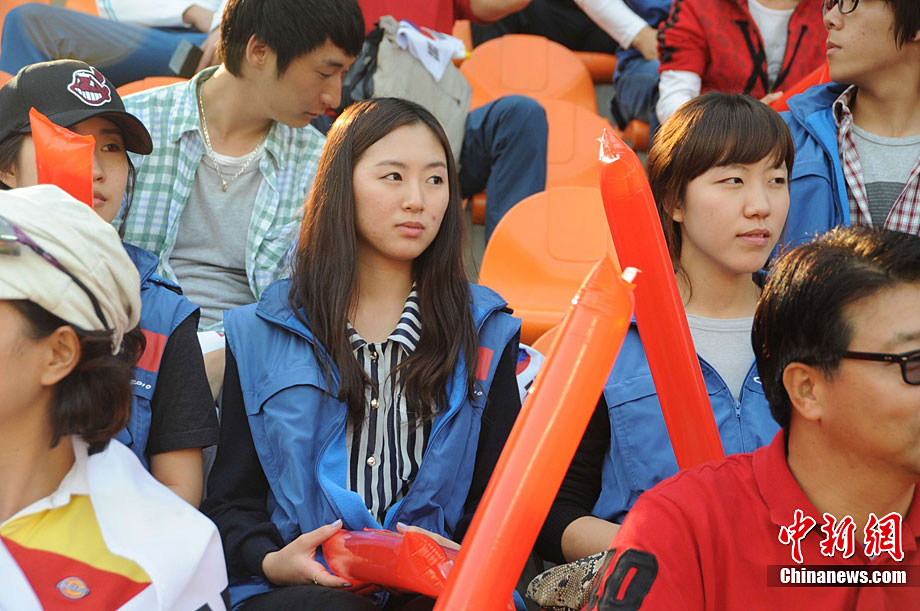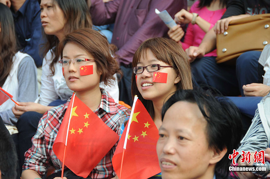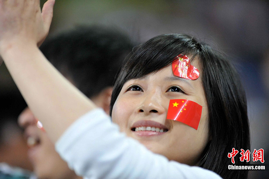 廣州亞運會女子足球賽中國隊與韓國隊的銅牌爭奪戰(zhàn)11月22日在廣州天河體育館開打。圖為賽場上熱情的中國球迷。中新社記者 唐貴江 攝
